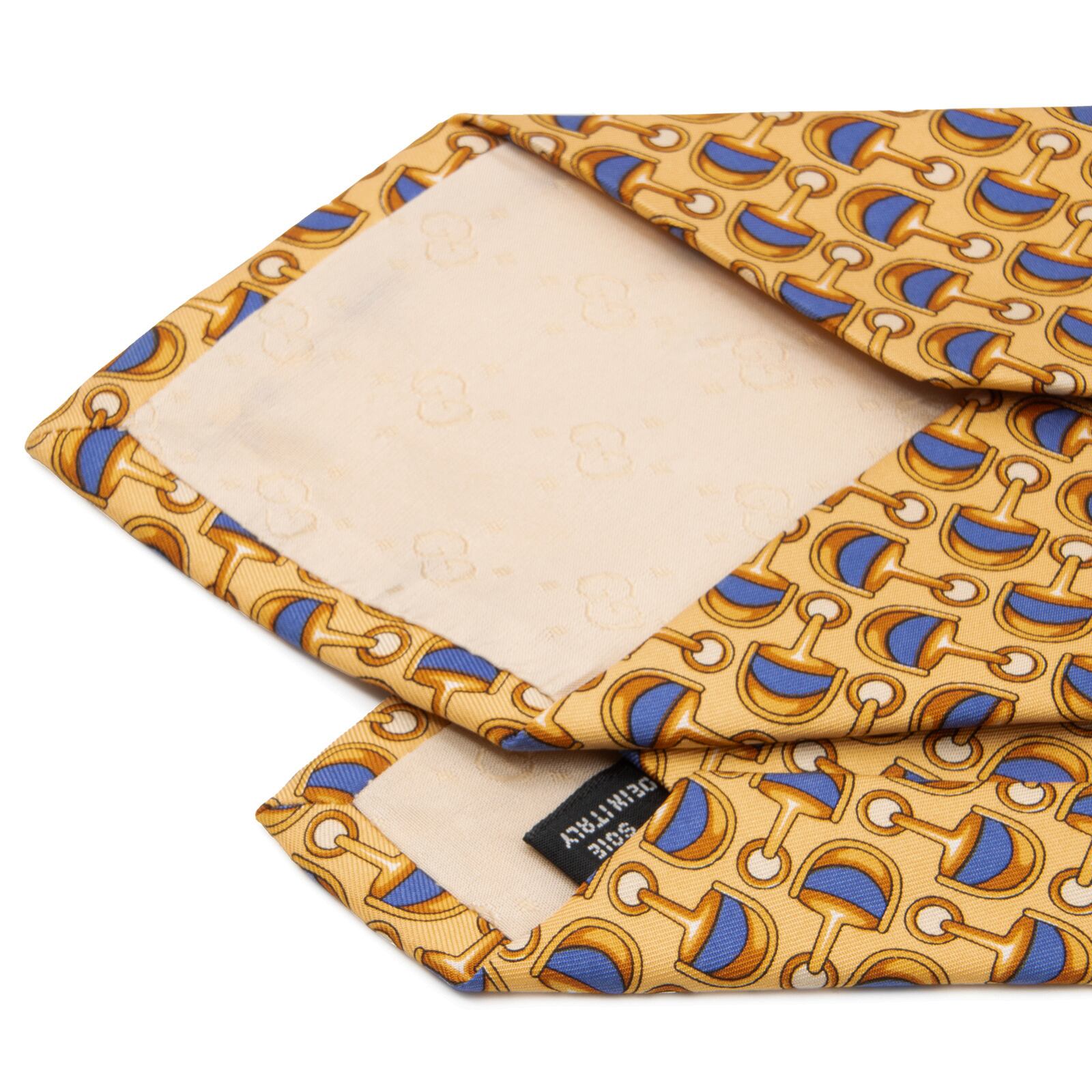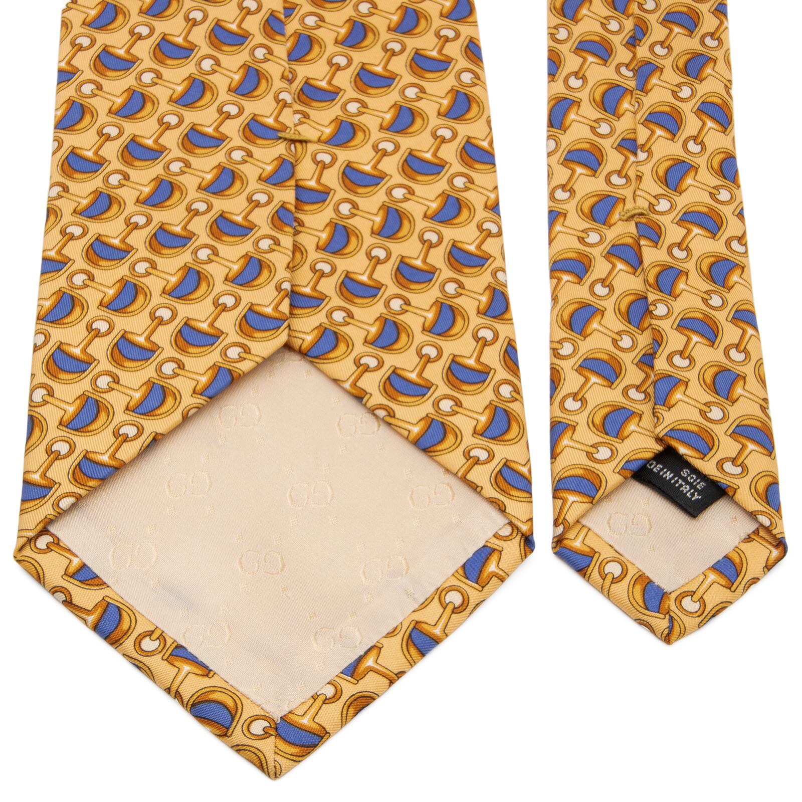送料無料 グッチ ネクタイ ワイドタイ シルク 黄色 青 ブルー ビジネス カジュアル ブランド ホースビット 珍しい おしゃれ 人気 綺麗 N639