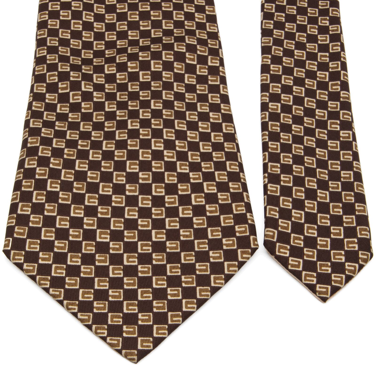 送料無料 グッチ ネクタイ ワイドタイ シルク 茶色 ブラウン ベージュ ビジネス カジュアル Gマーク ロゴ 珍しい おしゃれ 人気 綺麗 N641