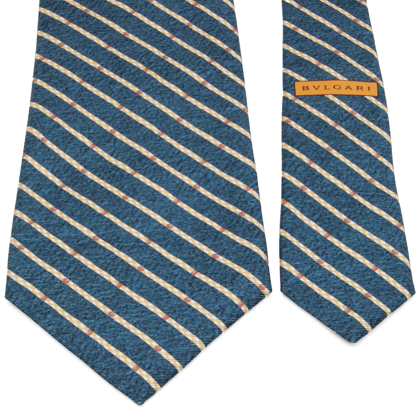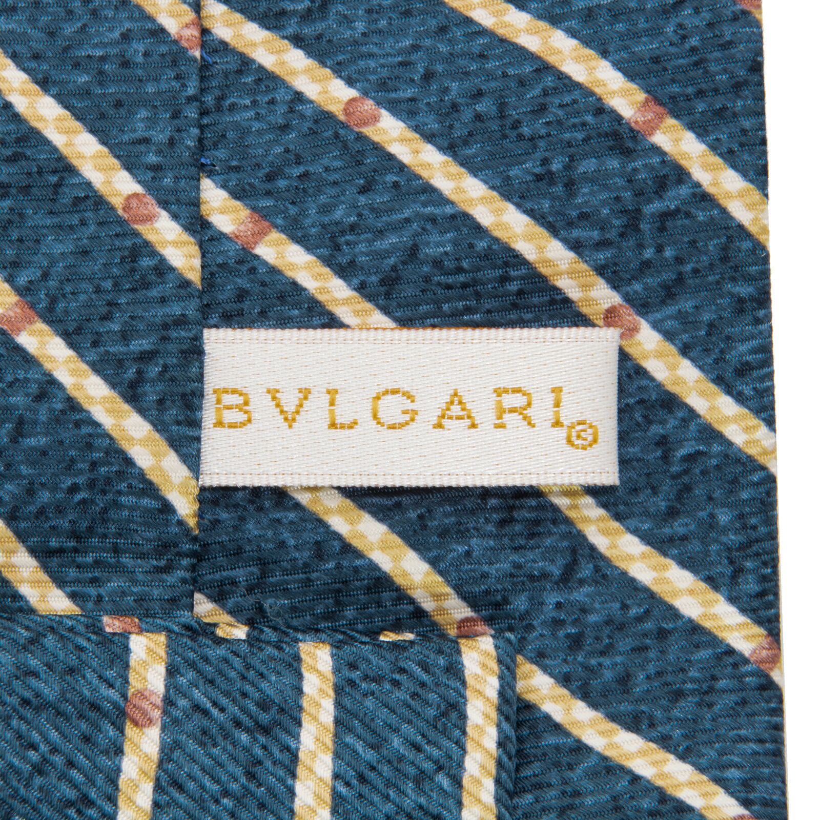 送料無料 ブルガリ ネクタイ セッテピエゲ シルク 青 ブルー 茶色 ビジネス ストライプ スクエア 円 ドット 珍しい おしゃれ 綺麗 N651