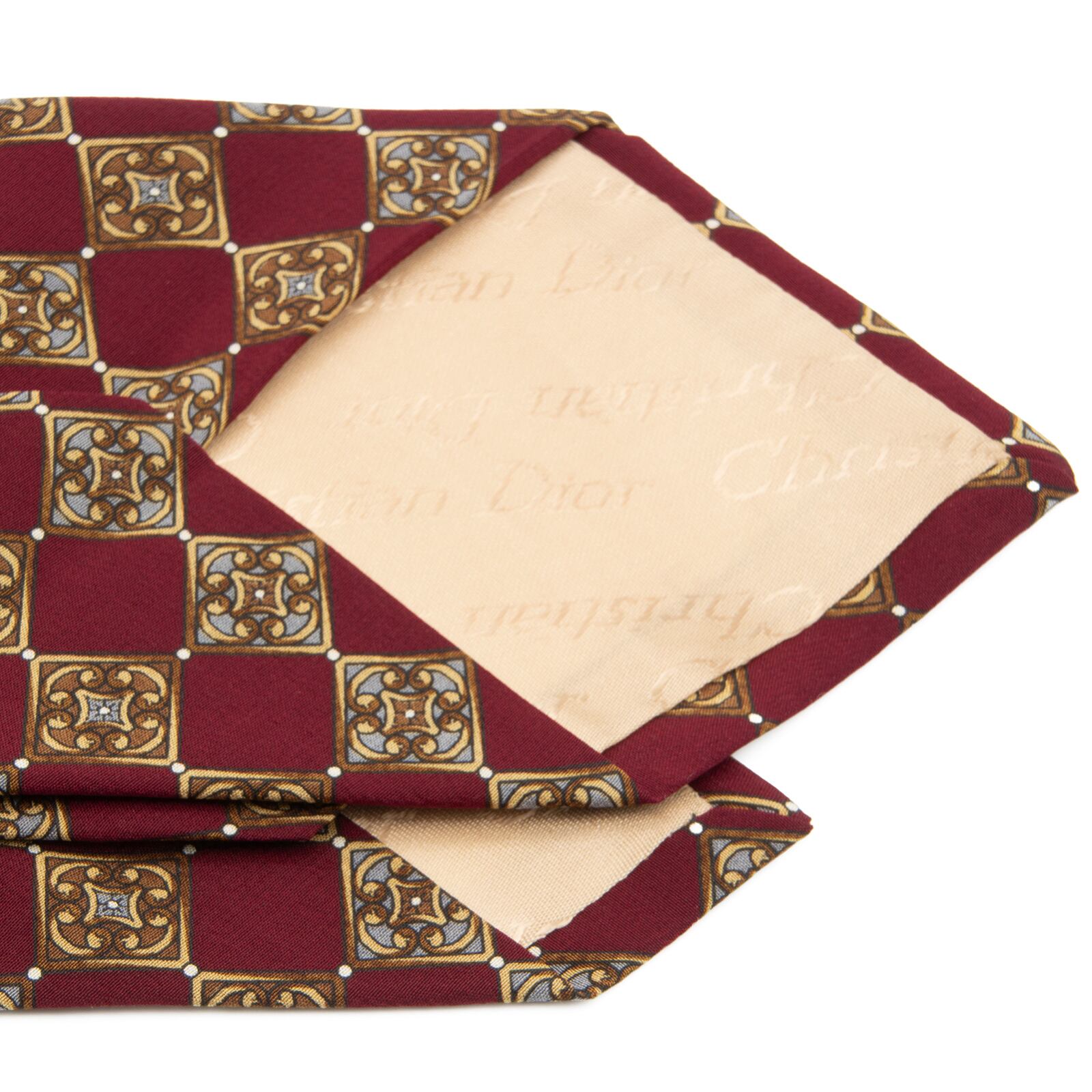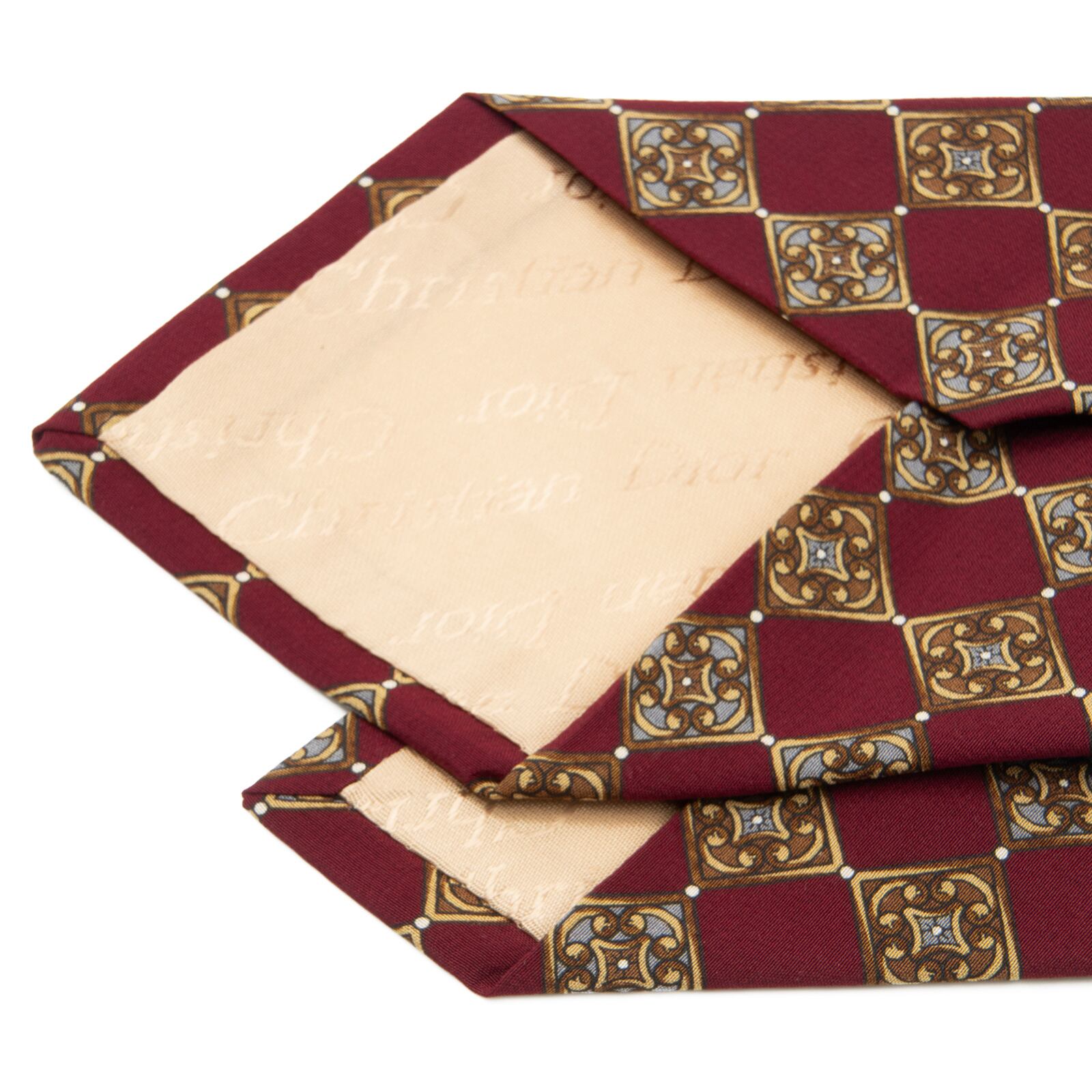 送料無料 ディオール ネクタイ 新品 レギュラータイ シルク バーガンディー 茶色 ブラウン 四角 スクエア タイル 珍しい おしゃれ N659