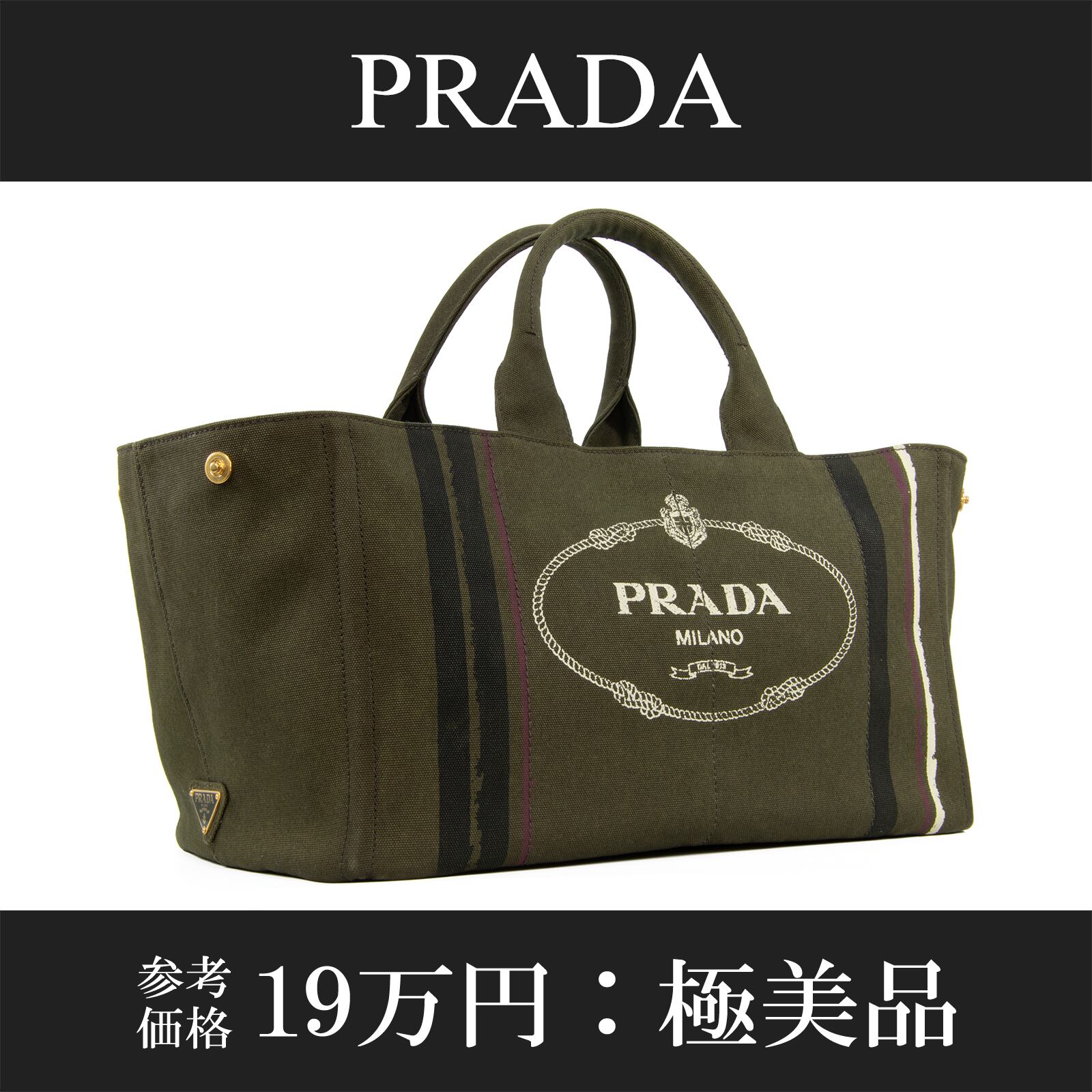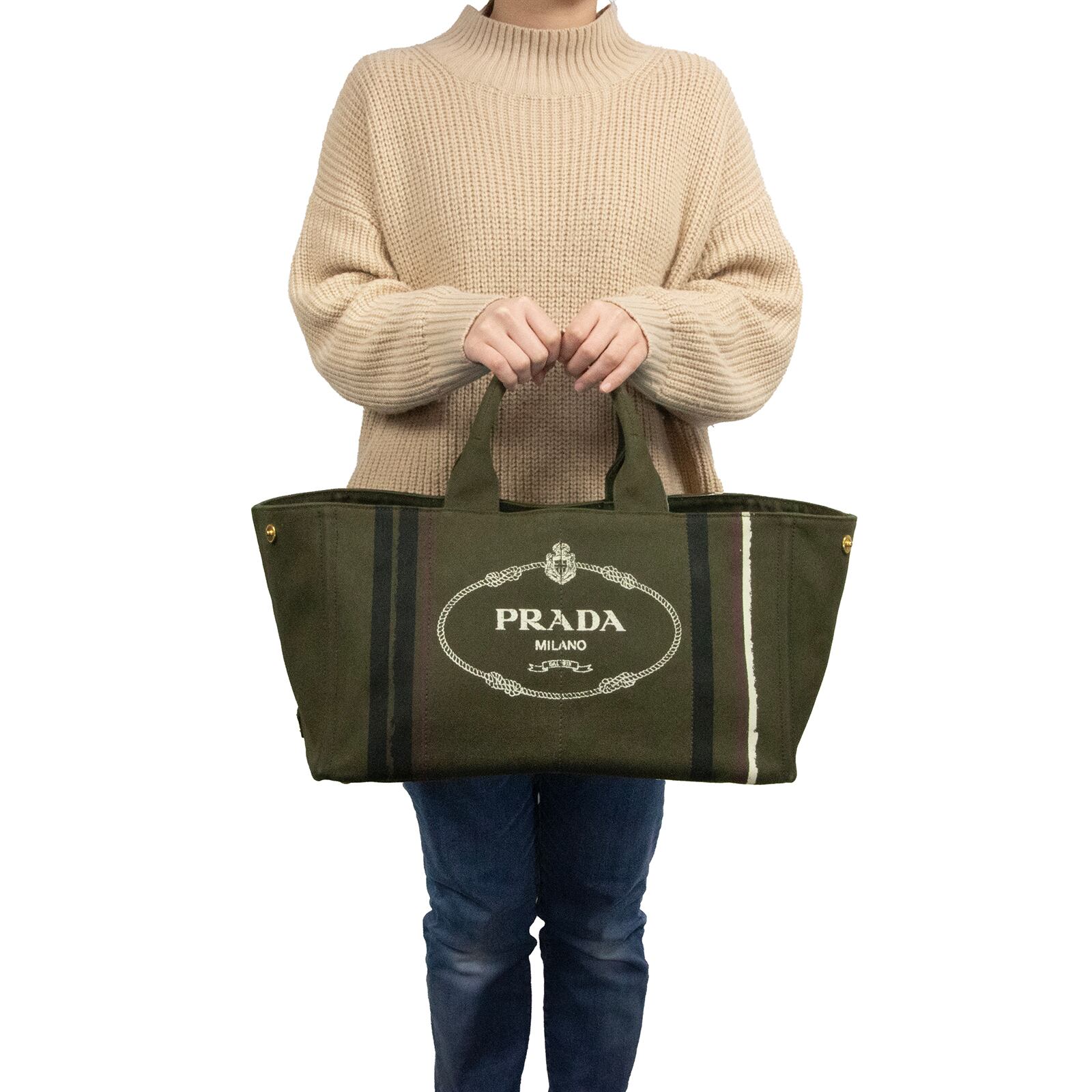 本物 送料無料 プラダ ハンドバッグ トートバッグ メンズ レディース カナパ Lサイズ 緑 黒 白 紫 珍しい 特大ロゴ 大容量 バック A809