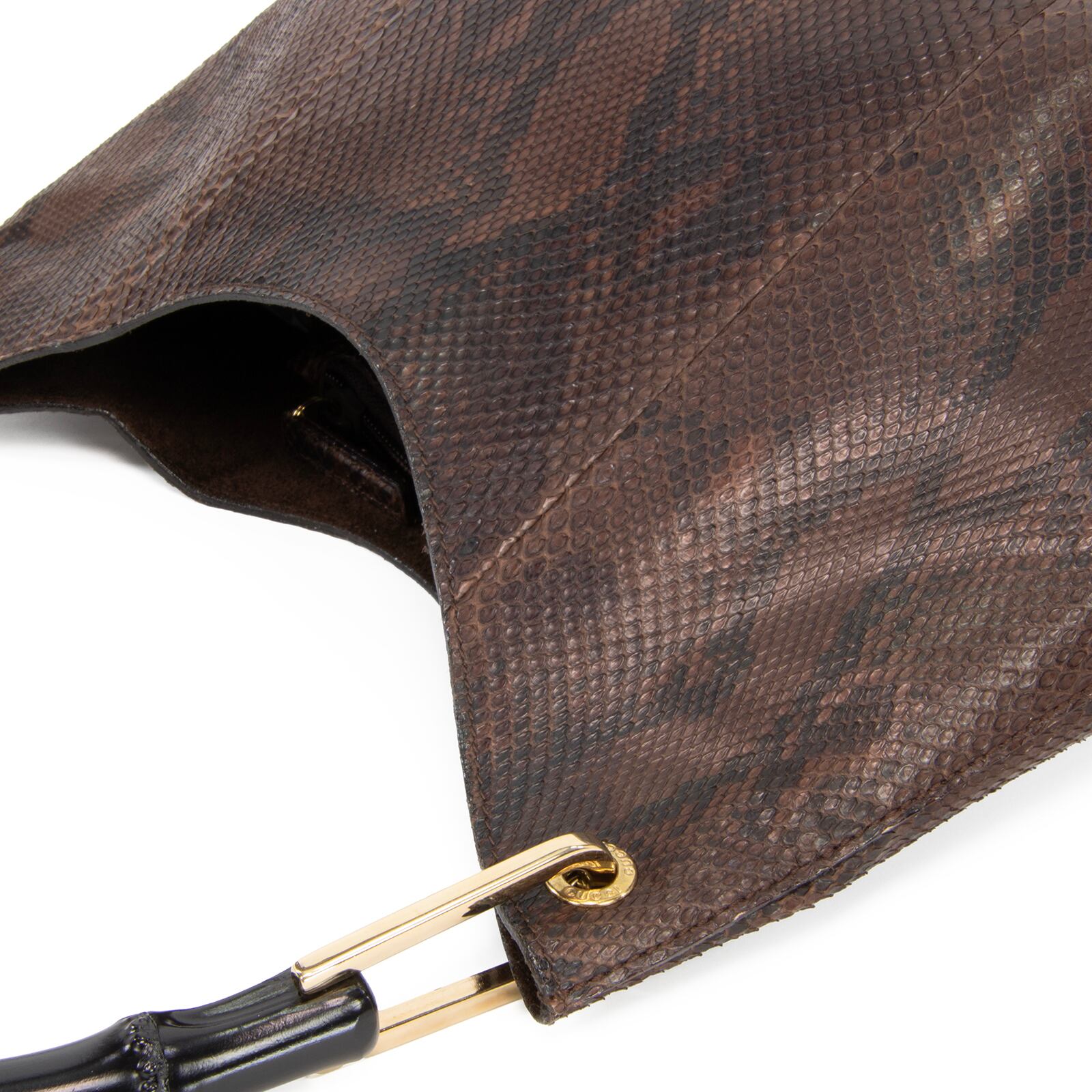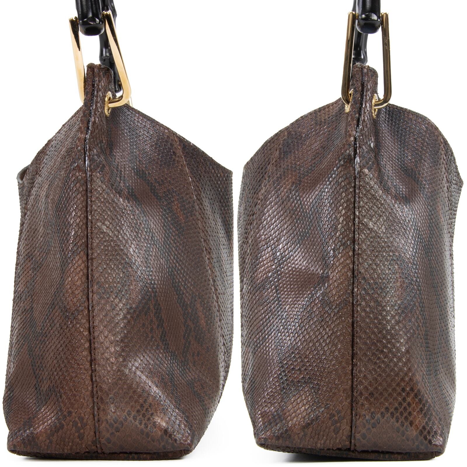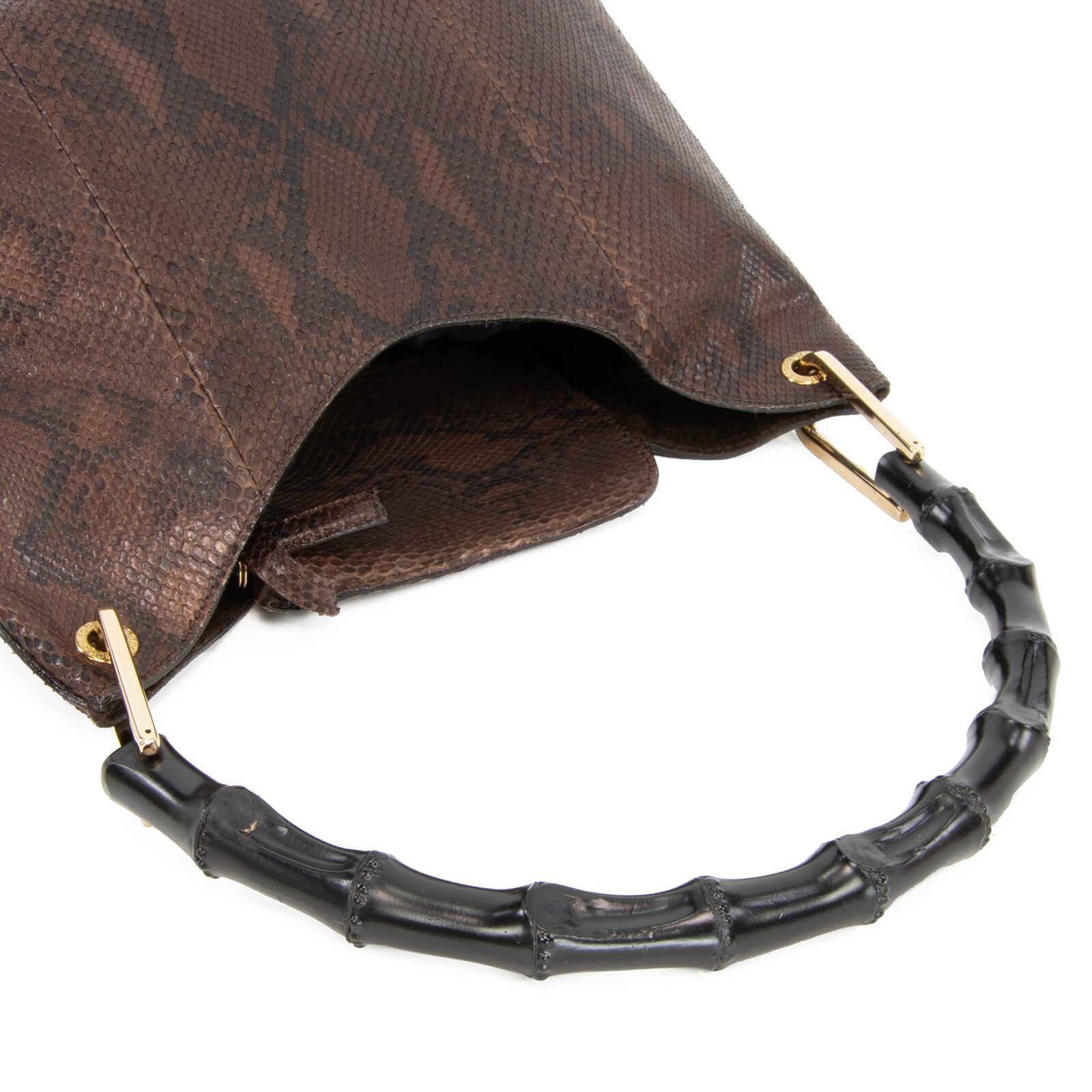 本物 送料無料 オールドグッチ ハンドバッグ ショルダーバッグ レディース パイソン バンブー 茶色 黒 肩掛け ポーチ付き 竹 バック A810