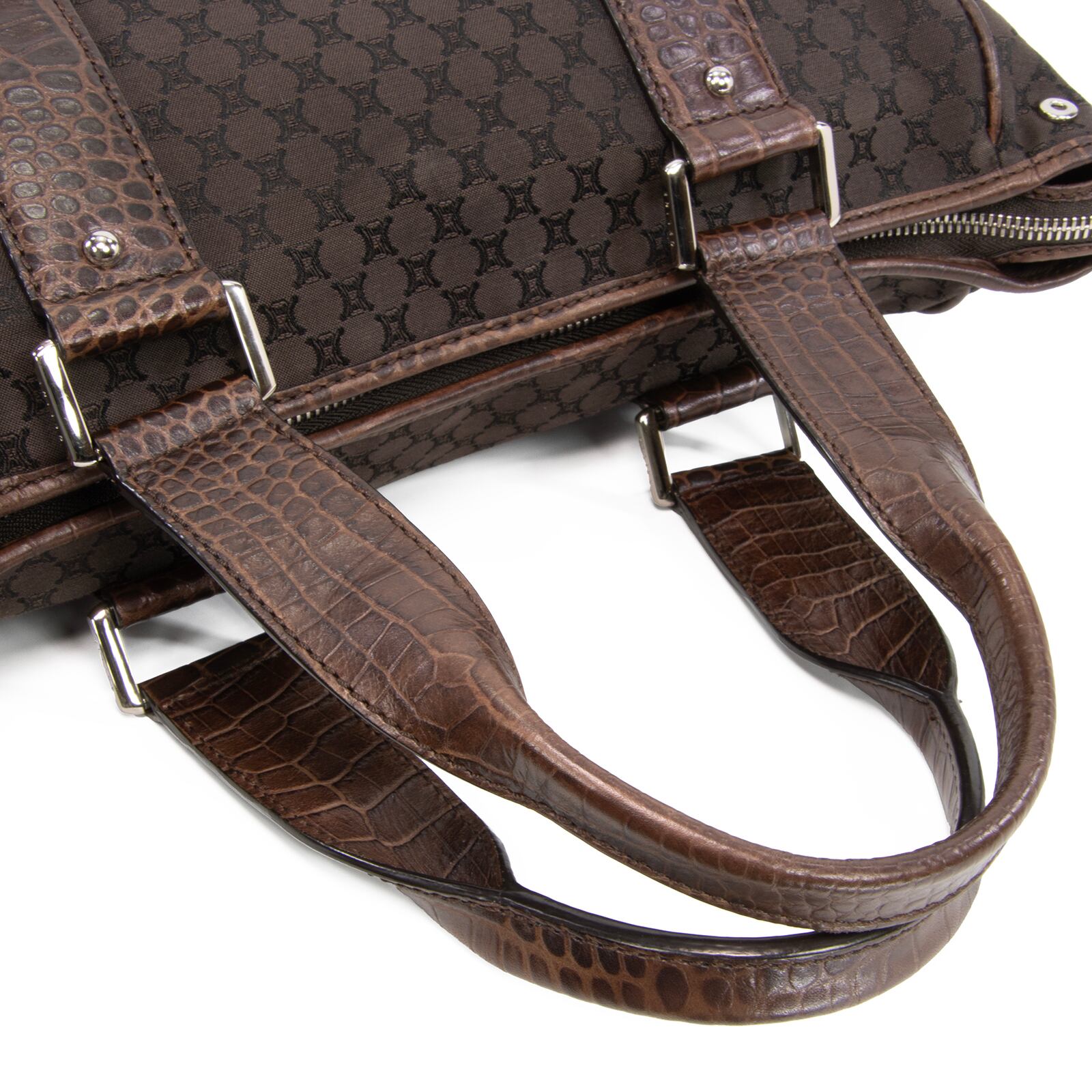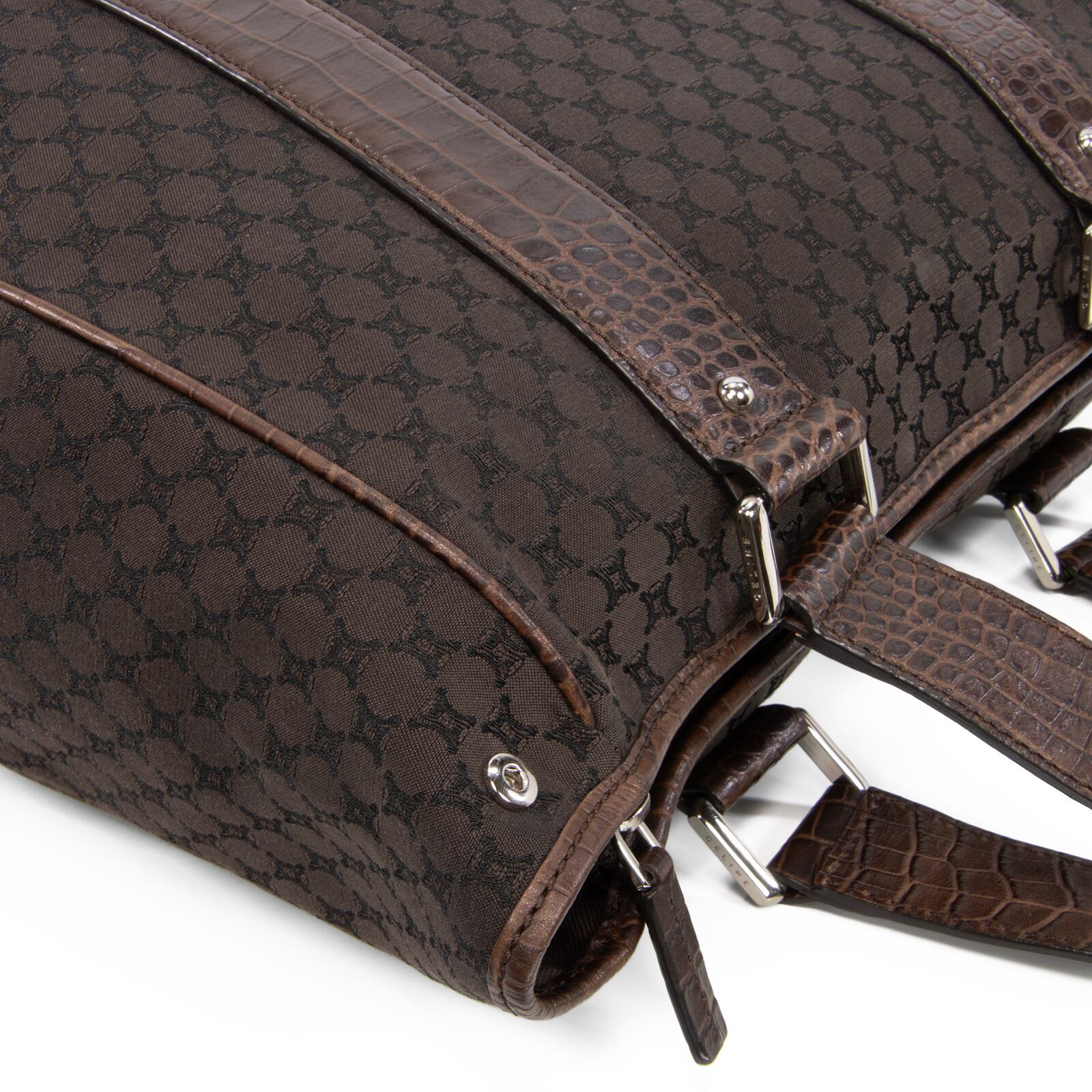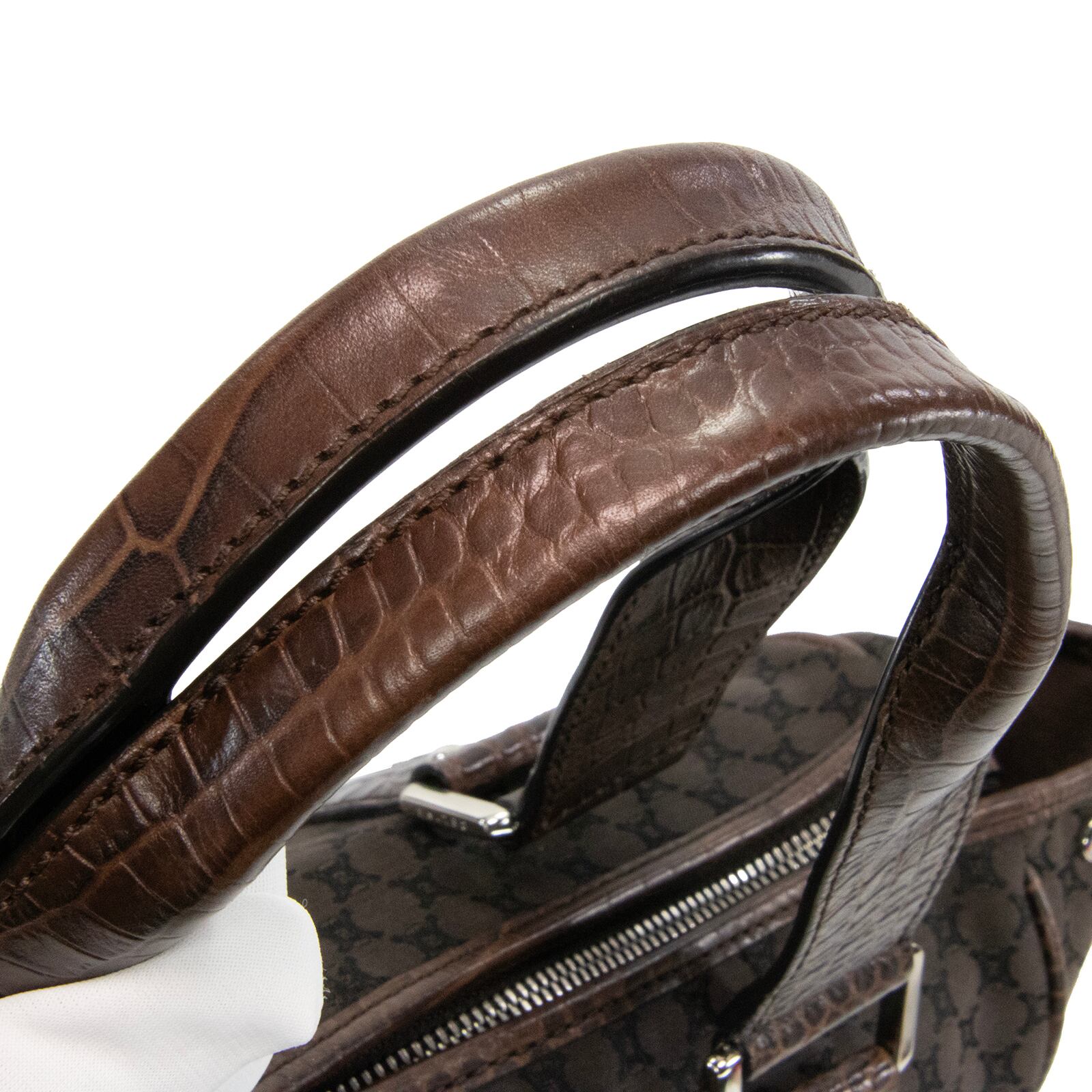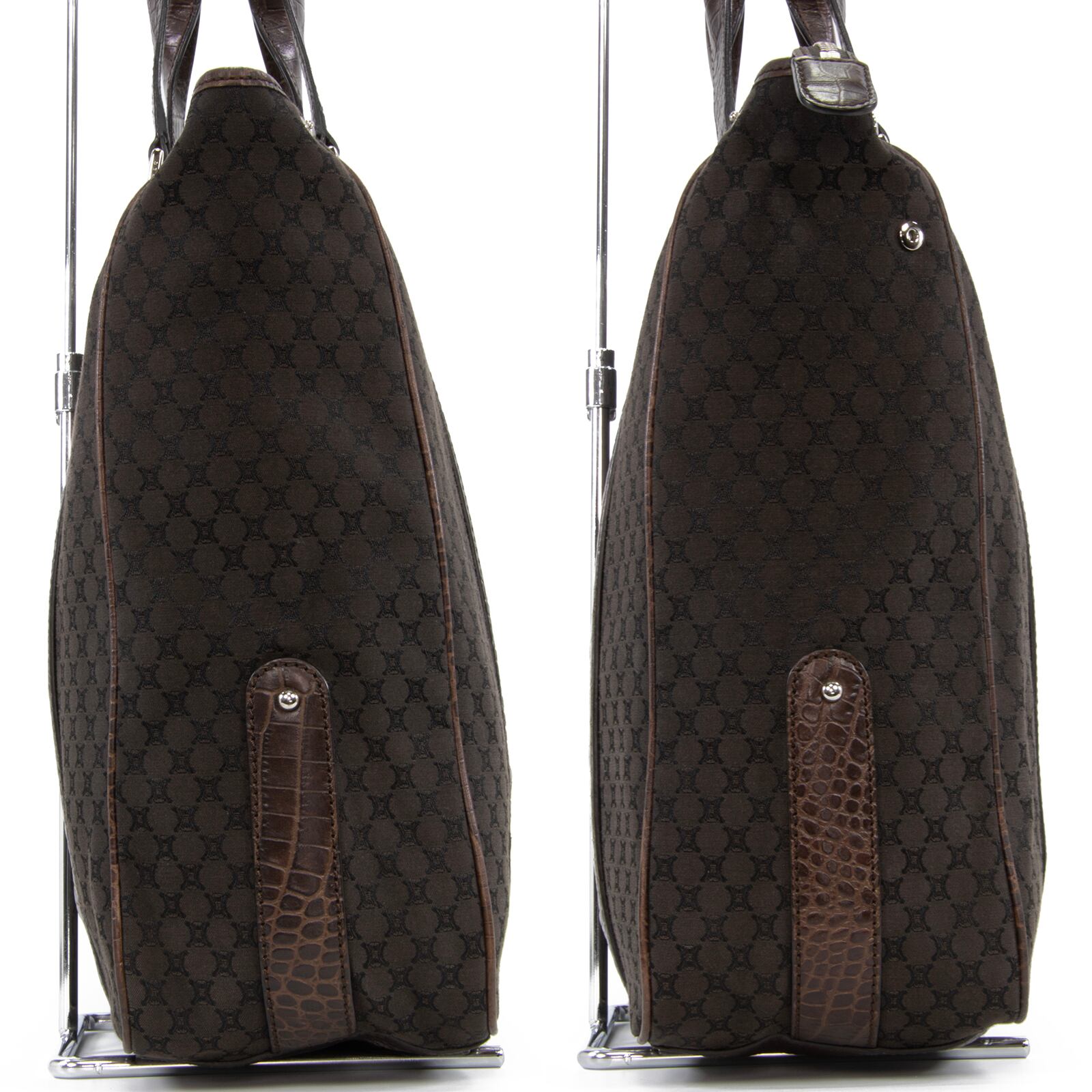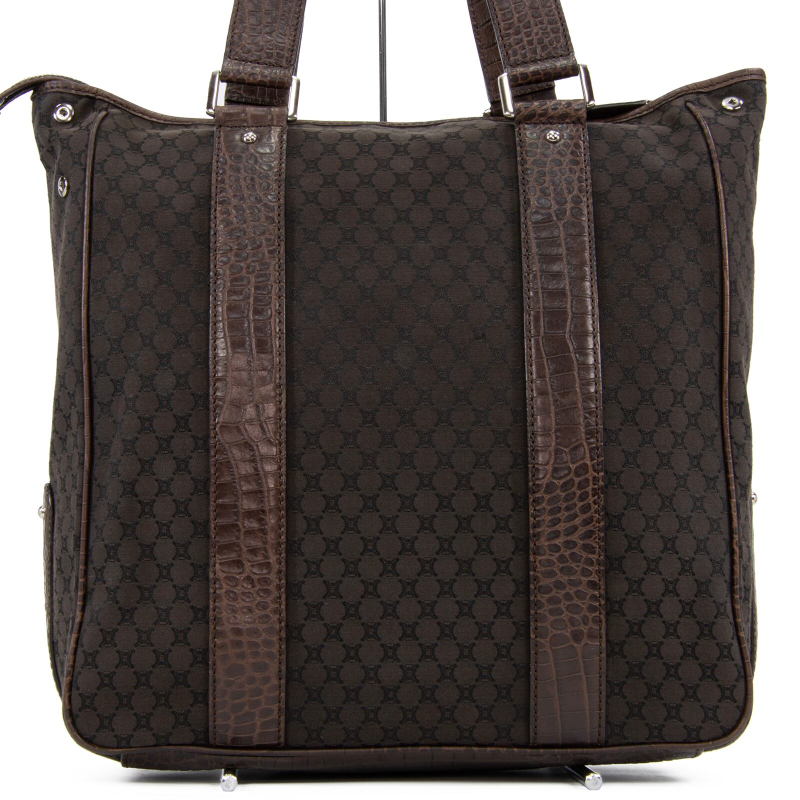 本物 送料無料 セリーヌ ハンドバッグ トートバッグ メンズ レディース マカダム 茶色 ブラウン 黒 ブラック 本革 ロゴ 縦長 バック A813