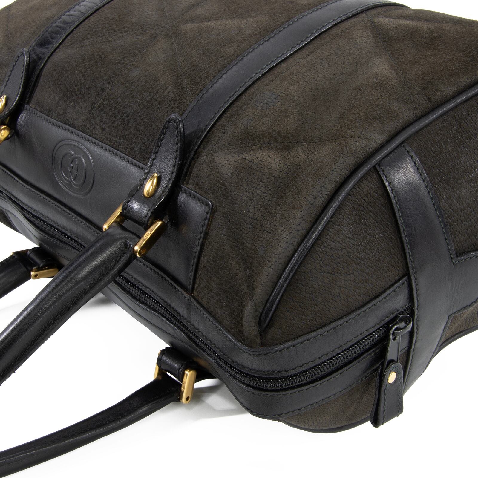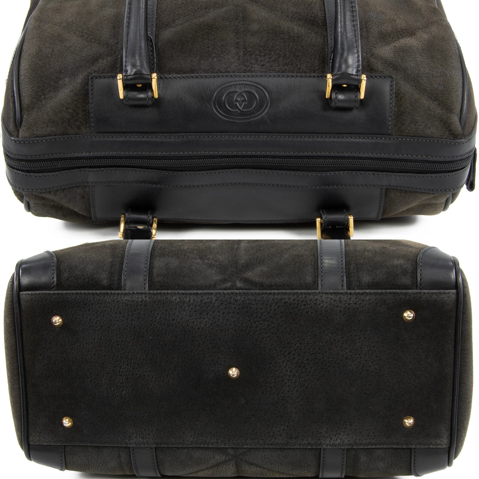 本物 送料無料 オールドグッチ ハンドバッグ ミニボストンバッグ メンズ レディース 黒 ブラック グレー 珍しい GGロゴ 本革 バック A819