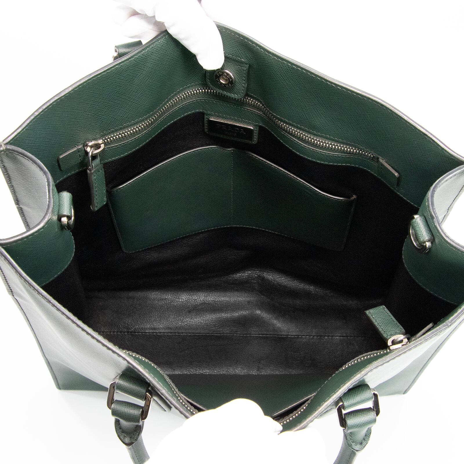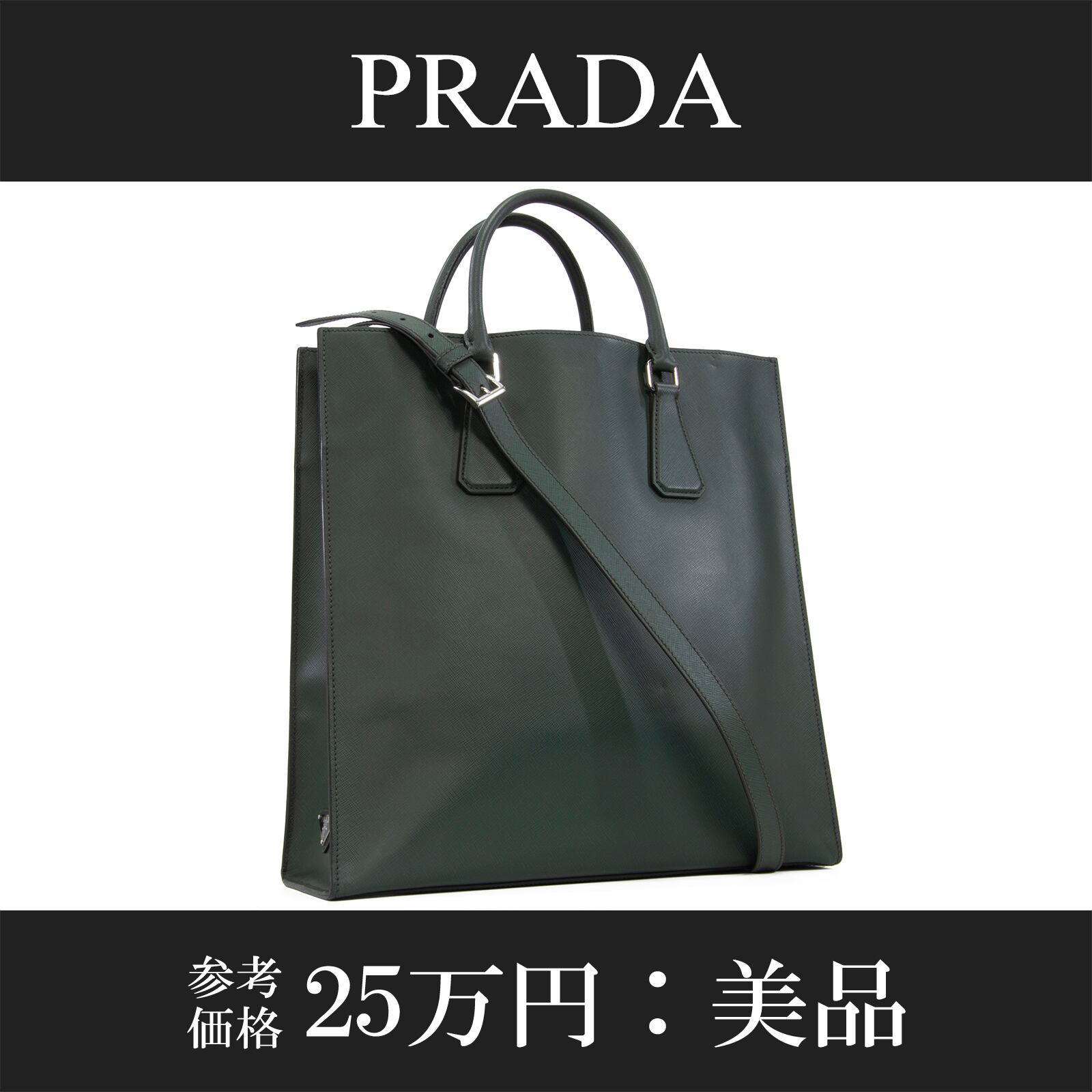 本物 送料無料 プラダ 2WAYショルダーバッグ メンズ レディース サフィアーノレザー 緑 斜め掛け 三角ロゴ マーク 本革 バック 綺麗 B251