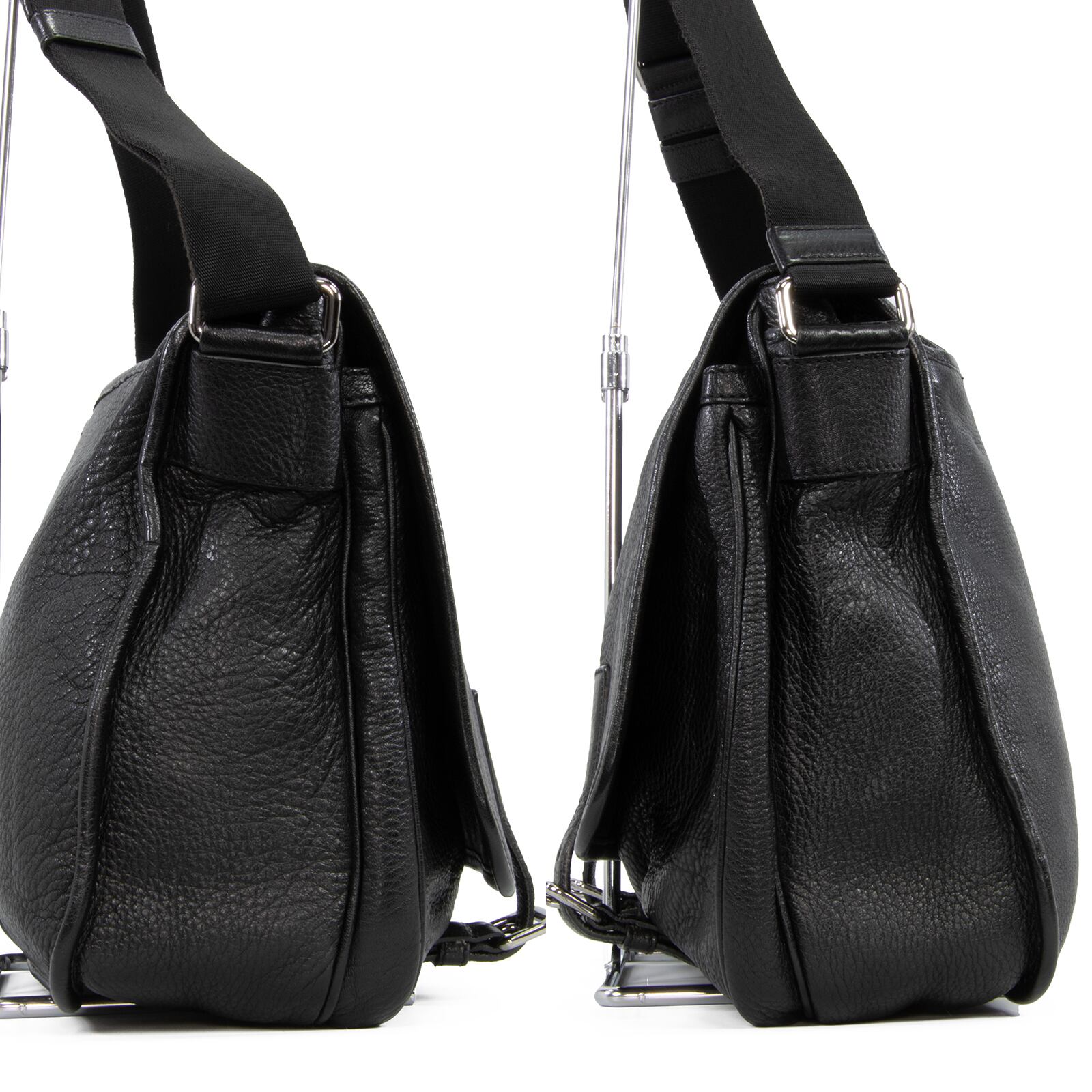 本物 送料無料 プラダ ショルダーバッグ メッセンジャーバッグ メンズ レディース 黒 ブラック 斜め掛け ロゴ 本革 レザー バック E373