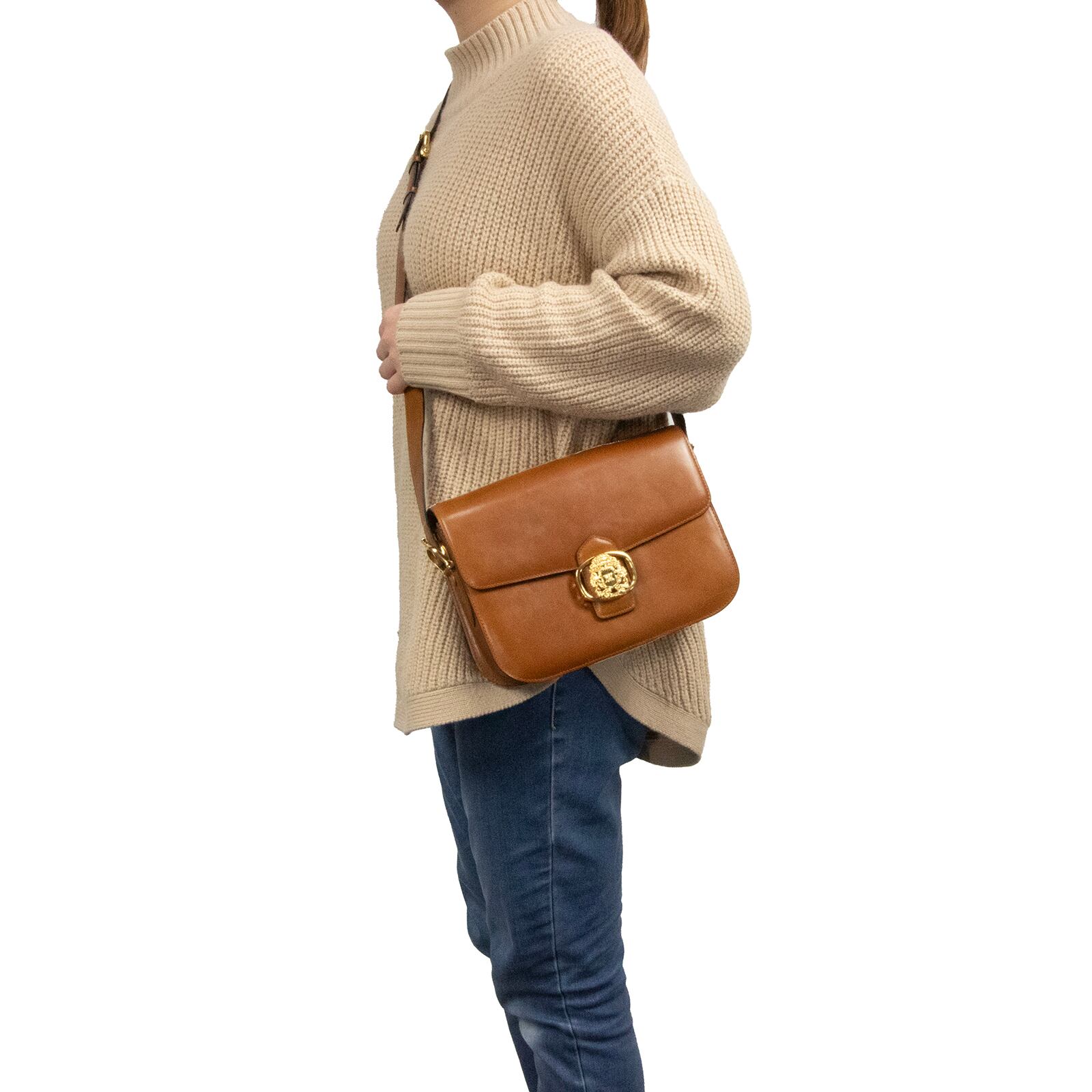 本物 送料無料 オールドセリーヌ ショルダーバッグ レディース 革 レザー 茶色 ブラウン 珍しい 紋章 マカダム 斜め掛け ロゴ バック F223