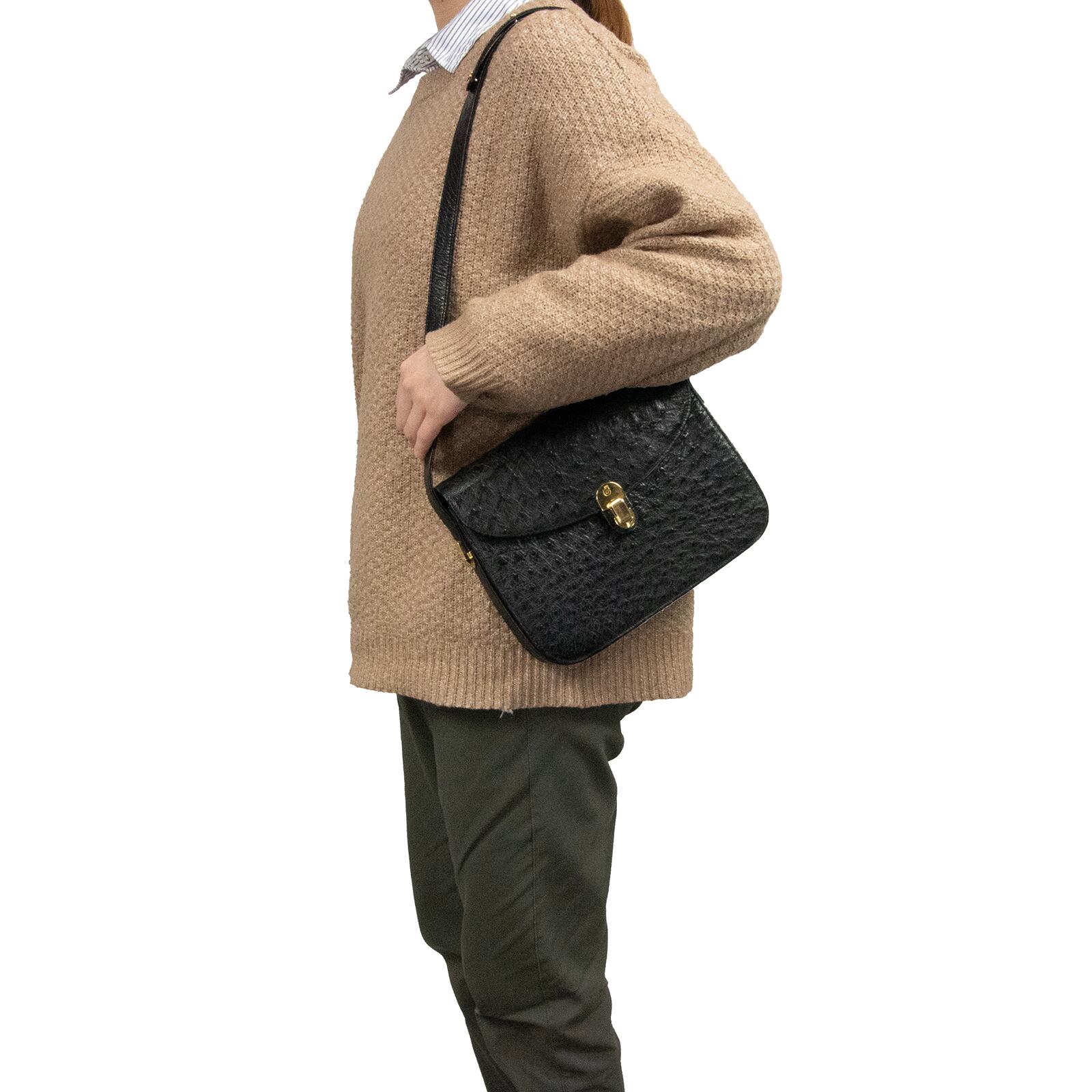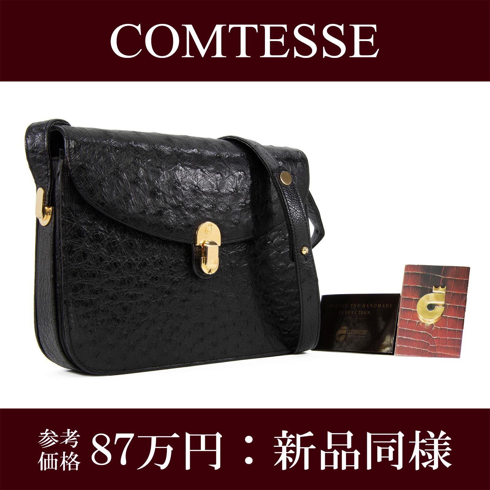 本物 送料無料 コンテス ハンドバッグ ショルダーバッグ レディース オーストリッチ 黒 ブラック 珍しい ダチョウの革 レザー バック F228