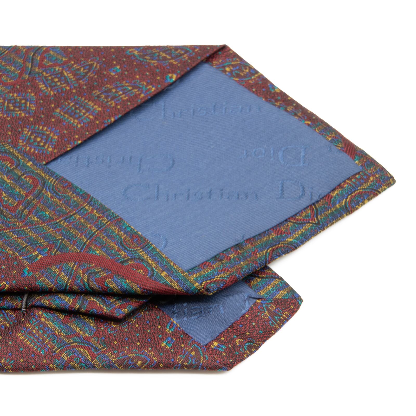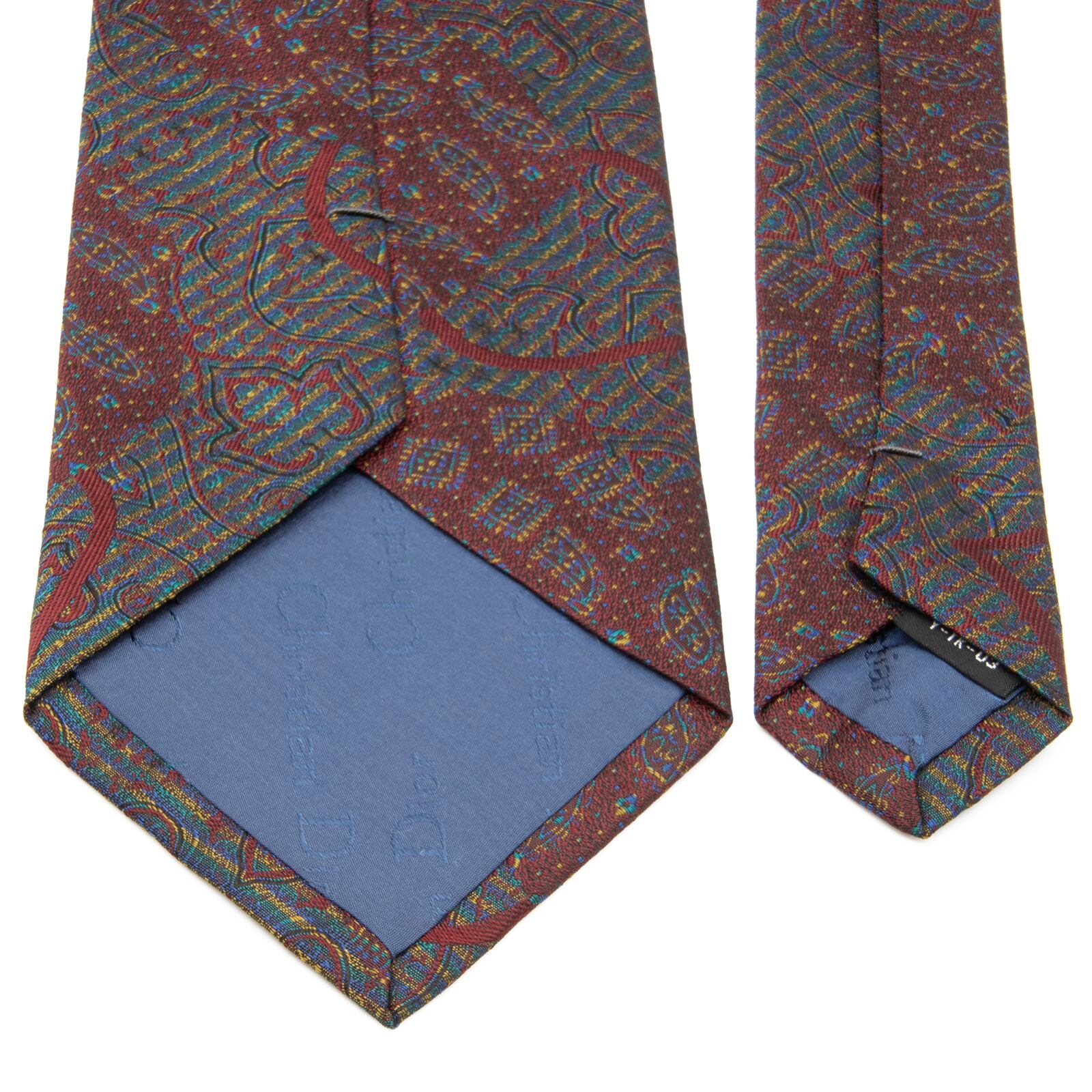 送料無料 ディオール ネクタイ 新品 ジャガードタイ シルク バーガンディー 青 ブルー 緑色 黄色 ストライプ ペイズリー おしゃれ N566