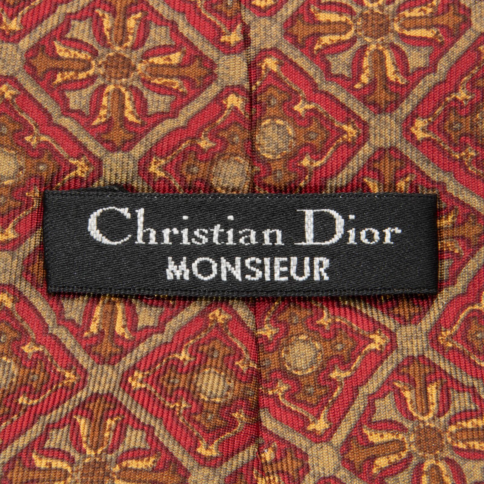 送料無料 ディオール ネクタイ 新品同様 レギュラータイ シルク 赤 茶色 オレンジ ビジネス ブランド マーク 珍しい おしゃれ 綺麗 N568