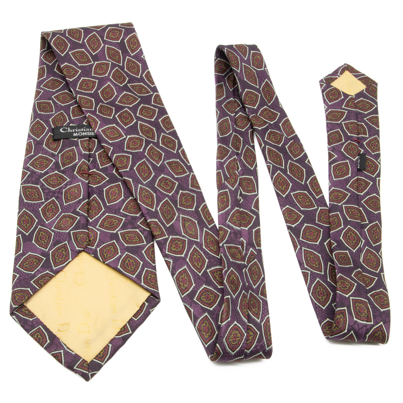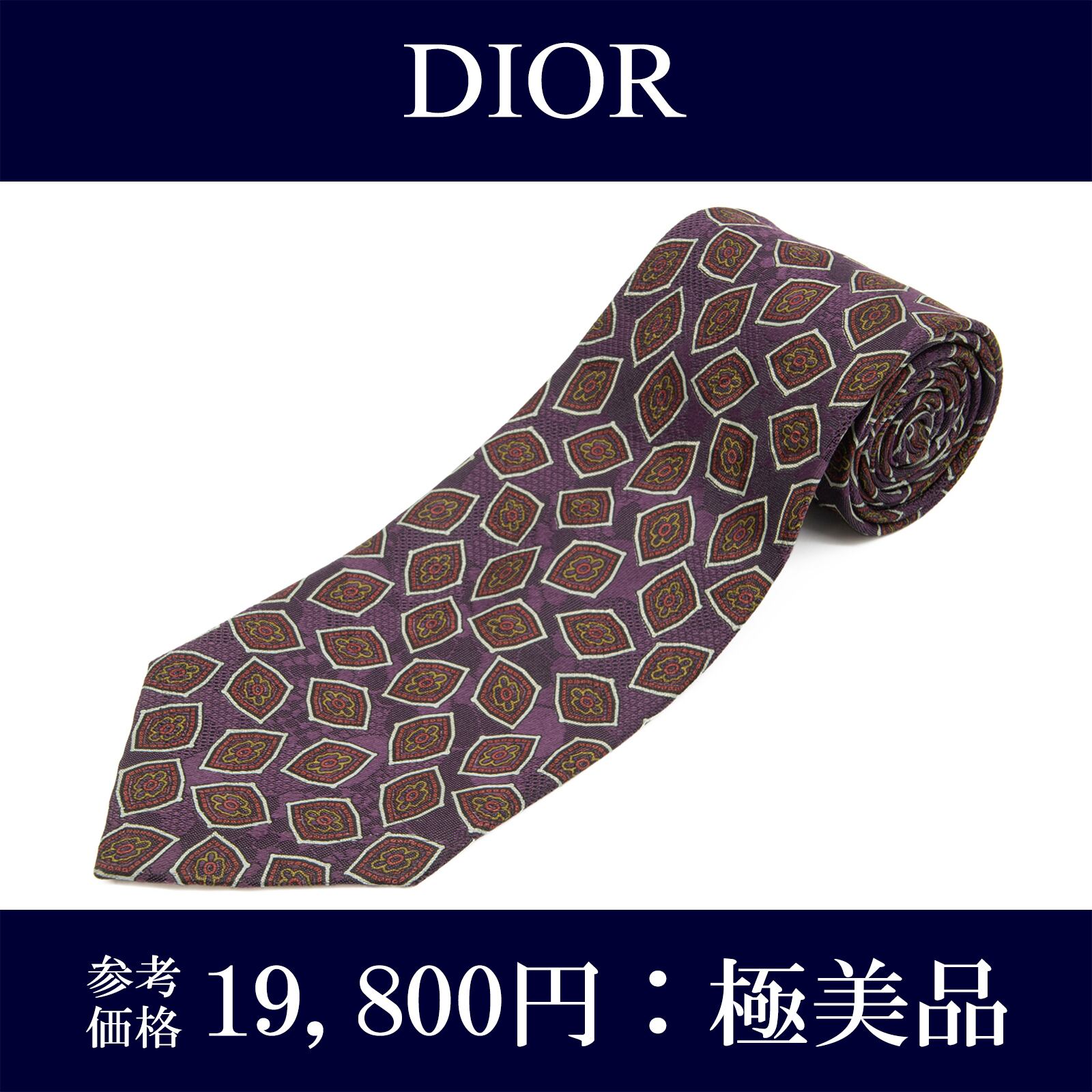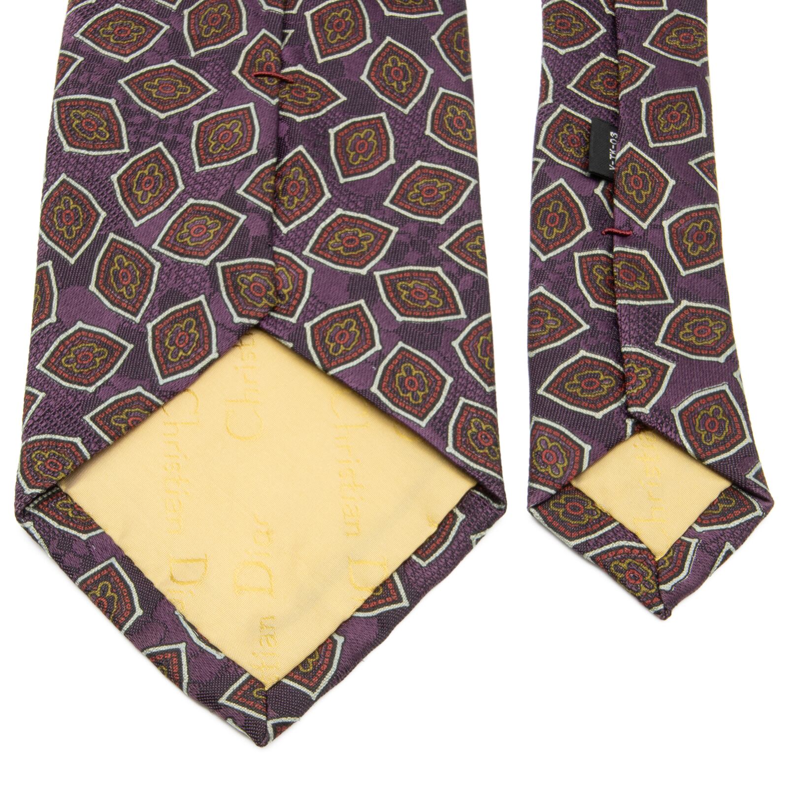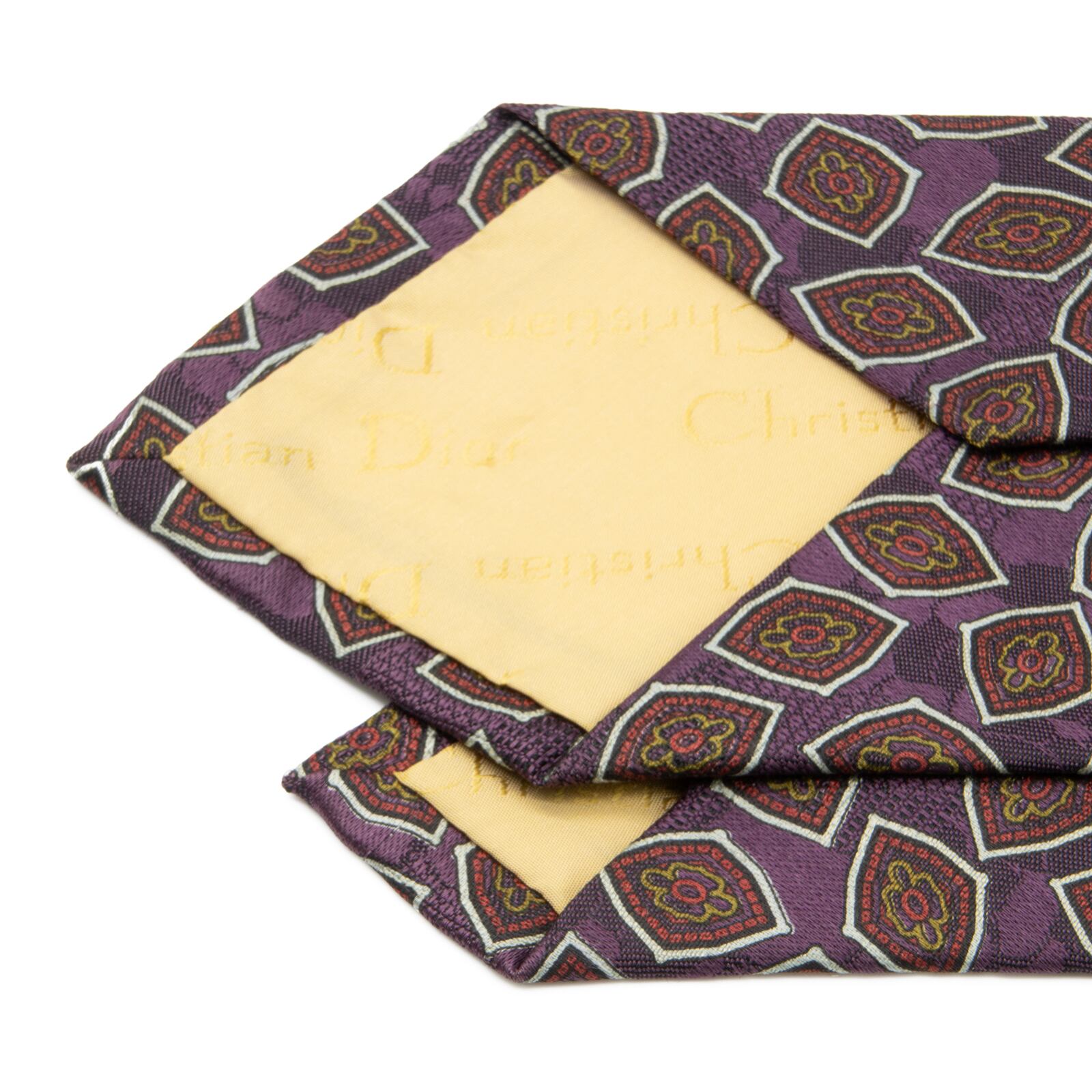 送料無料 ディオール ネクタイ ジャガードタイ シルク 紫 バーガンディー イエロー ブランド 花 フラワー 光沢 珍しい おしゃれ 綺麗 N587