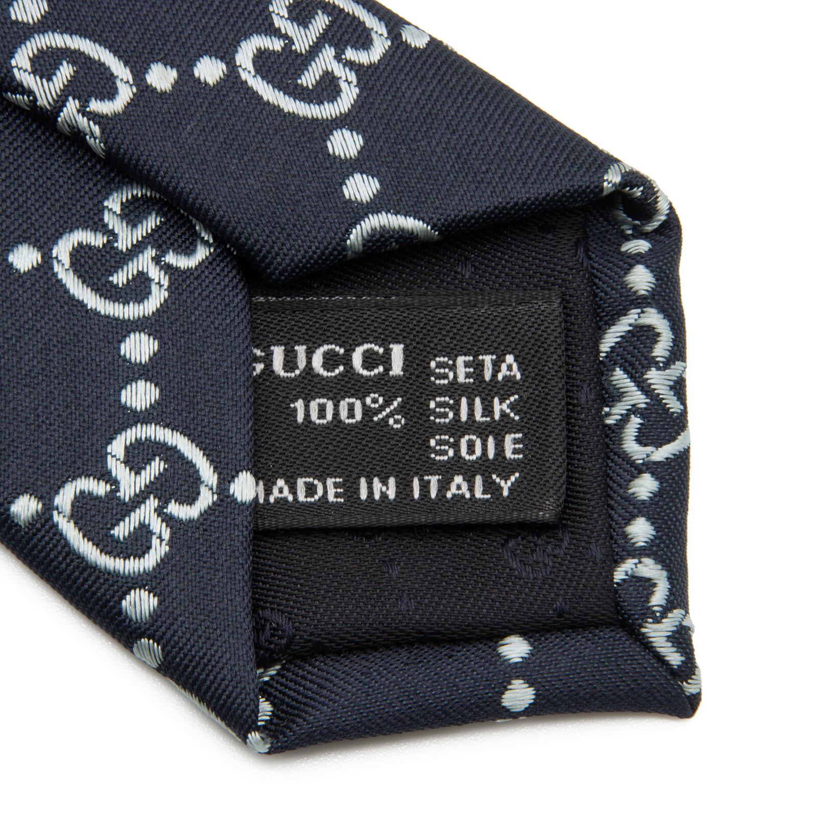 送料無料 グッチ ネクタイ 新品 ジャガードタイ シルク ネイビーブルー 水色 ビジネス ブランド GGロゴ マーク 人気 おしゃれ 綺麗 N588