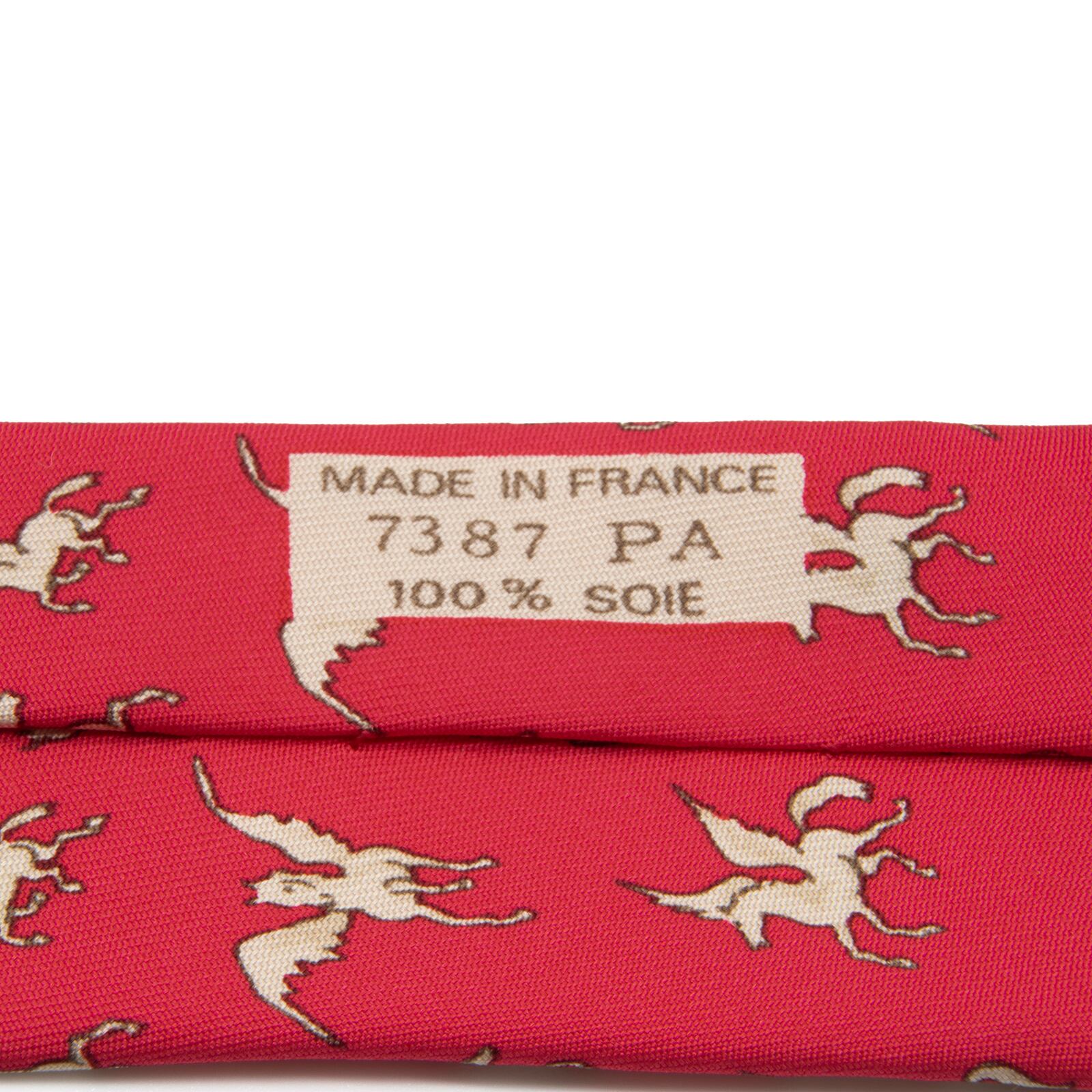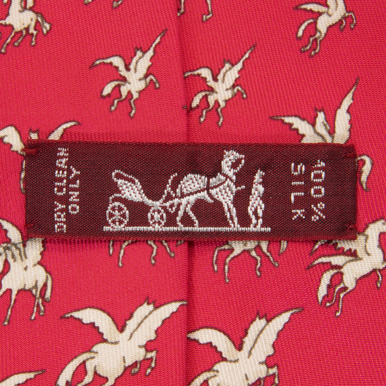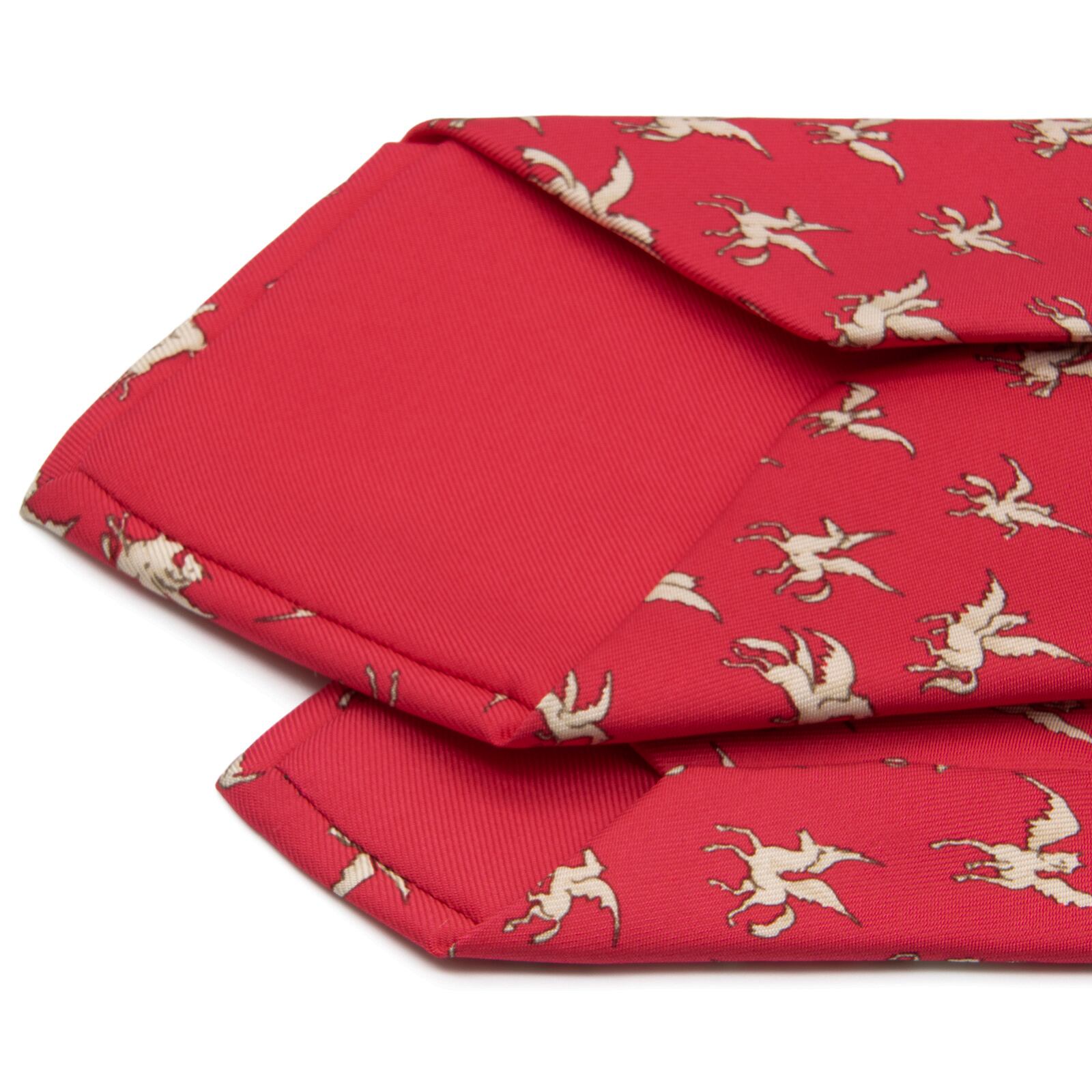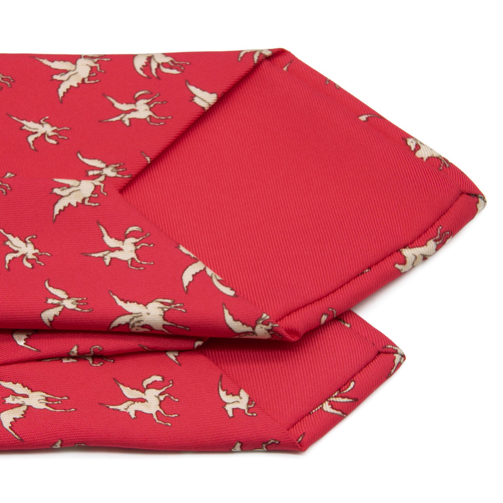 送料無料 エルメス ネクタイ シルク 赤 レッド クリムゾン 白 オフホワイト ペガサス 天馬 ギリシャ神話 マーク 珍しい おしゃれ 綺麗 N589