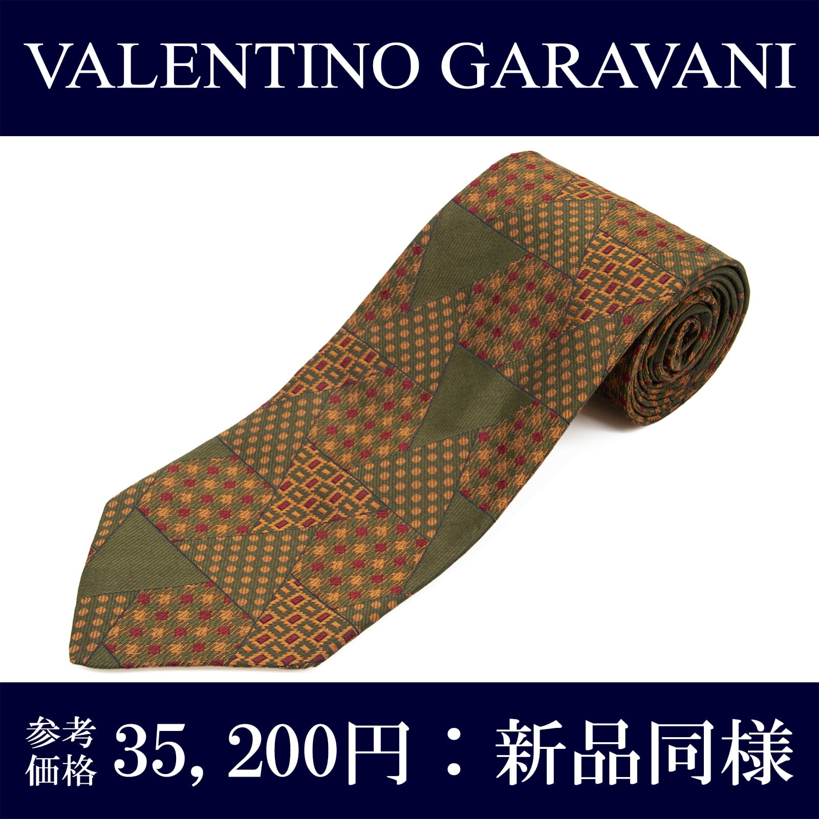 送料無料 ヴァレンティノガラヴァーニ ネクタイ 新品同様 ジャガードタイ シルク 緑 茶色 バーガンディー ブランド 三角 珍しい 綺麗 N598