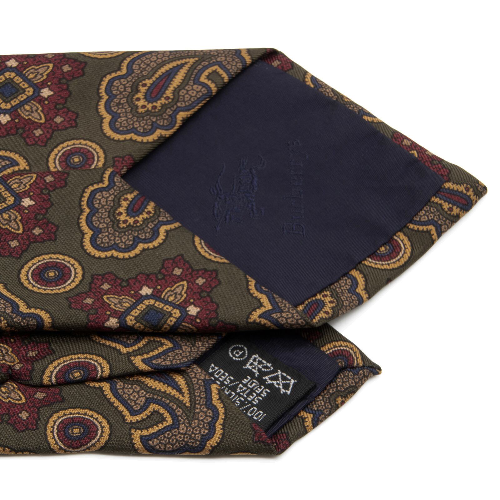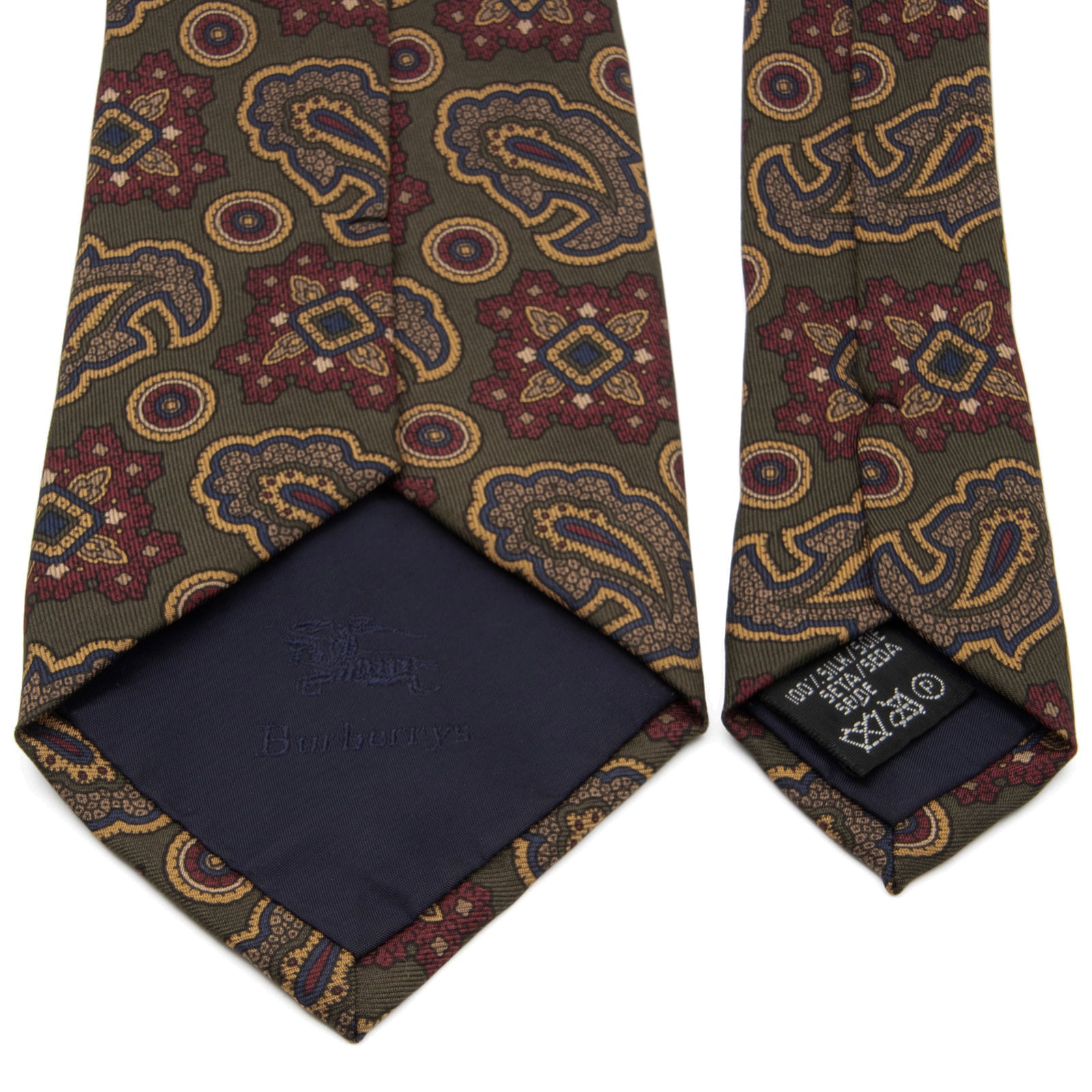 送料無料 バーバリー ネクタイ 新品 シルク 緑色 バーガンディー ネイビーブルー ベージュ ペイズリー ヴィンテージ 珍しい 綺麗 N603