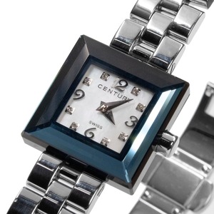 送料無料 センチュリー 腕時計 レディース TIMEGEM タイムジェム 白 青 ネイビーブルー レクタンギュラー 四角 ダイヤモンド ブランド X105