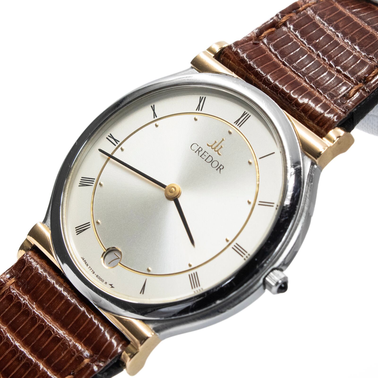 送料無料 セイコー 腕時計 メンズ CREDOR クレドール 7779-6000 金色 18Kゴールド 茶色 ロゴ マーク ローマン ブランド おしゃれ 綺麗 X110