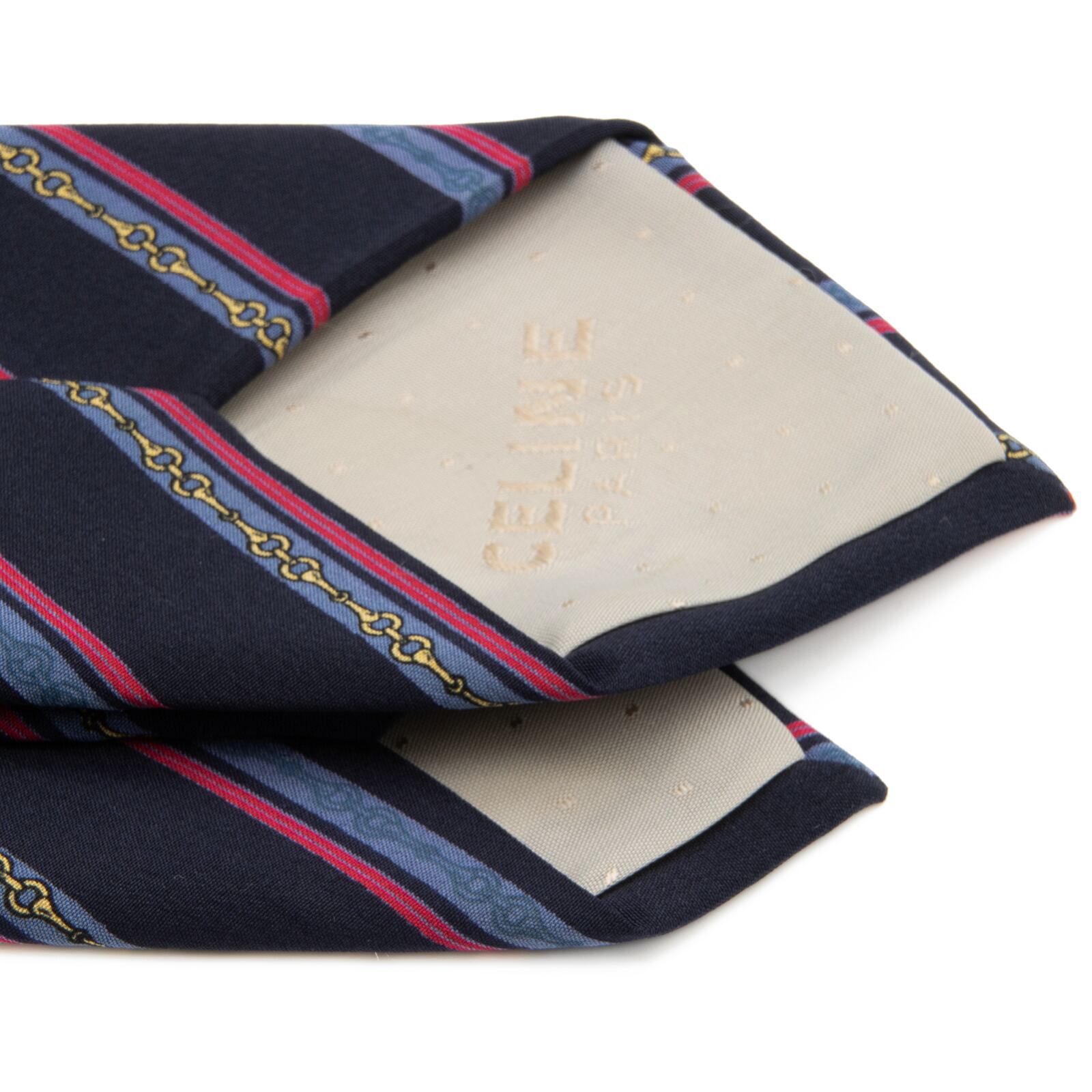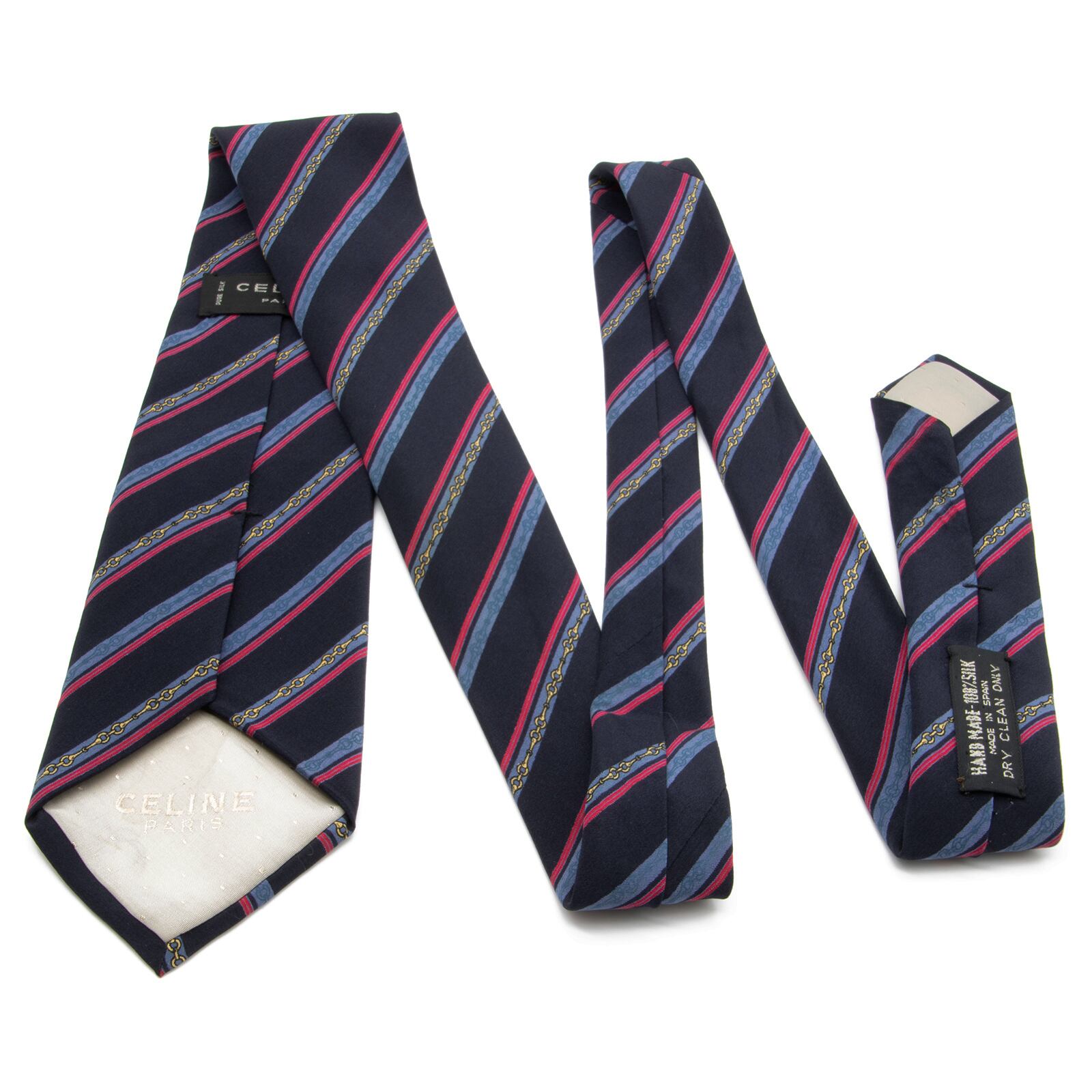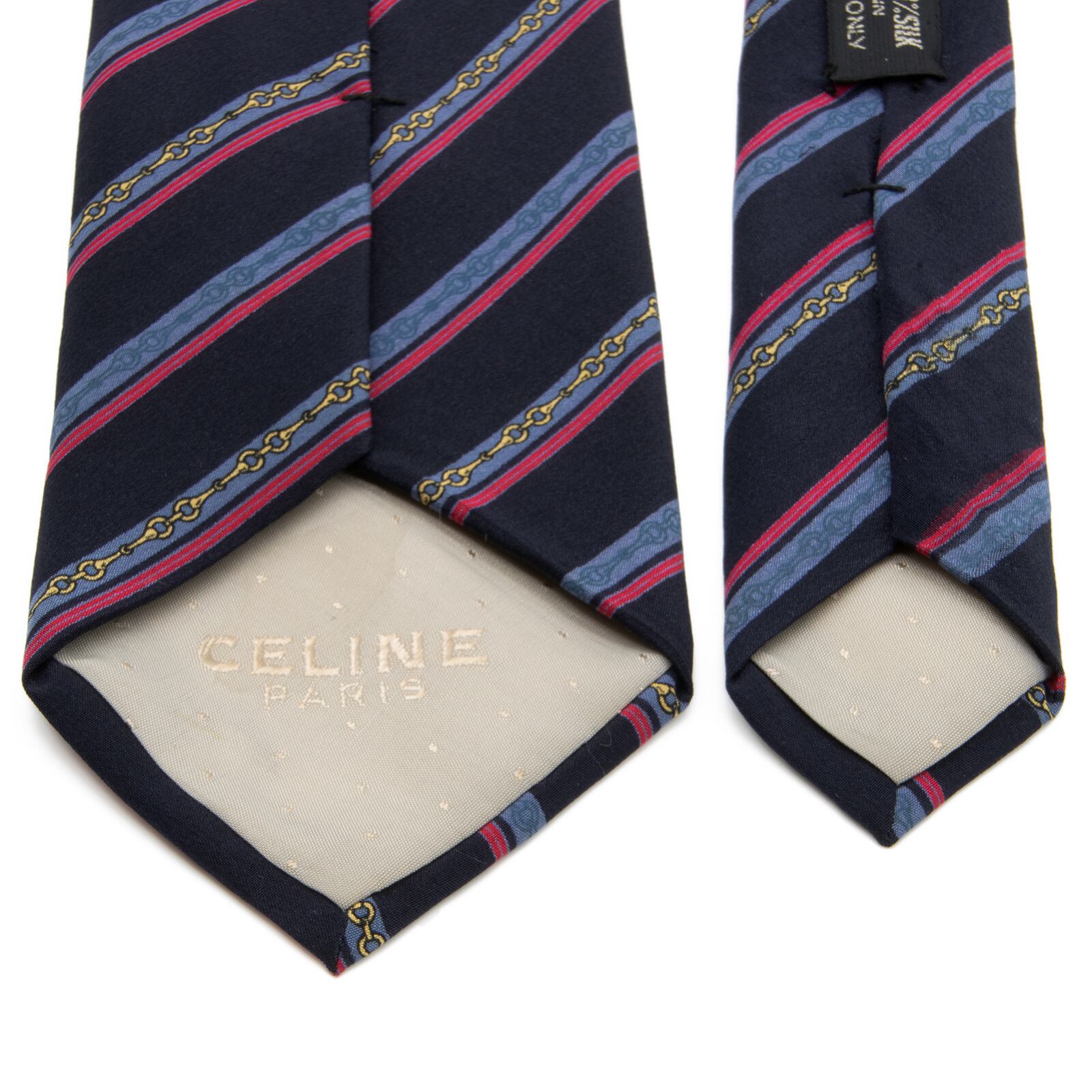 送料無料 セリーヌ ネクタイ シルク ネイビーブルー 青 赤 ビジネス ブランド マカダム ストライプ ホースビット ロゴ マーク 綺麗 N068
