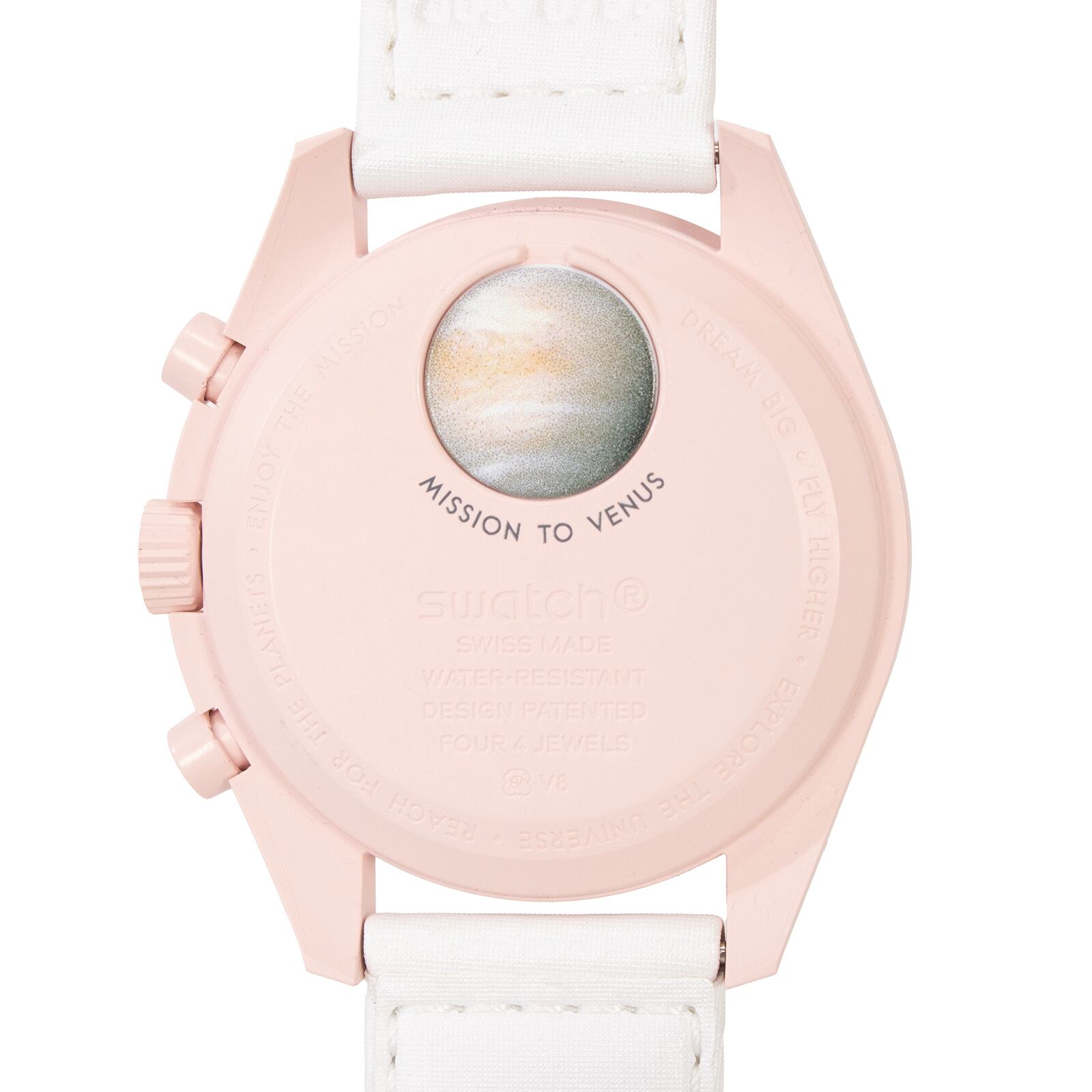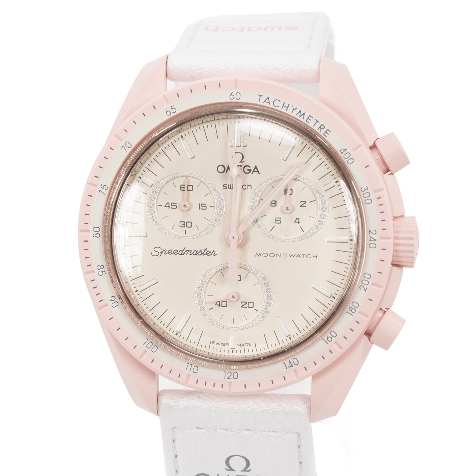 送料無料 スウォッチ 腕時計 新品 レディース MISSION TO VENUS 白 ピンク OMEGA オメガコラボ クロノグラフ 珍しい ロゴ おしゃれ X125