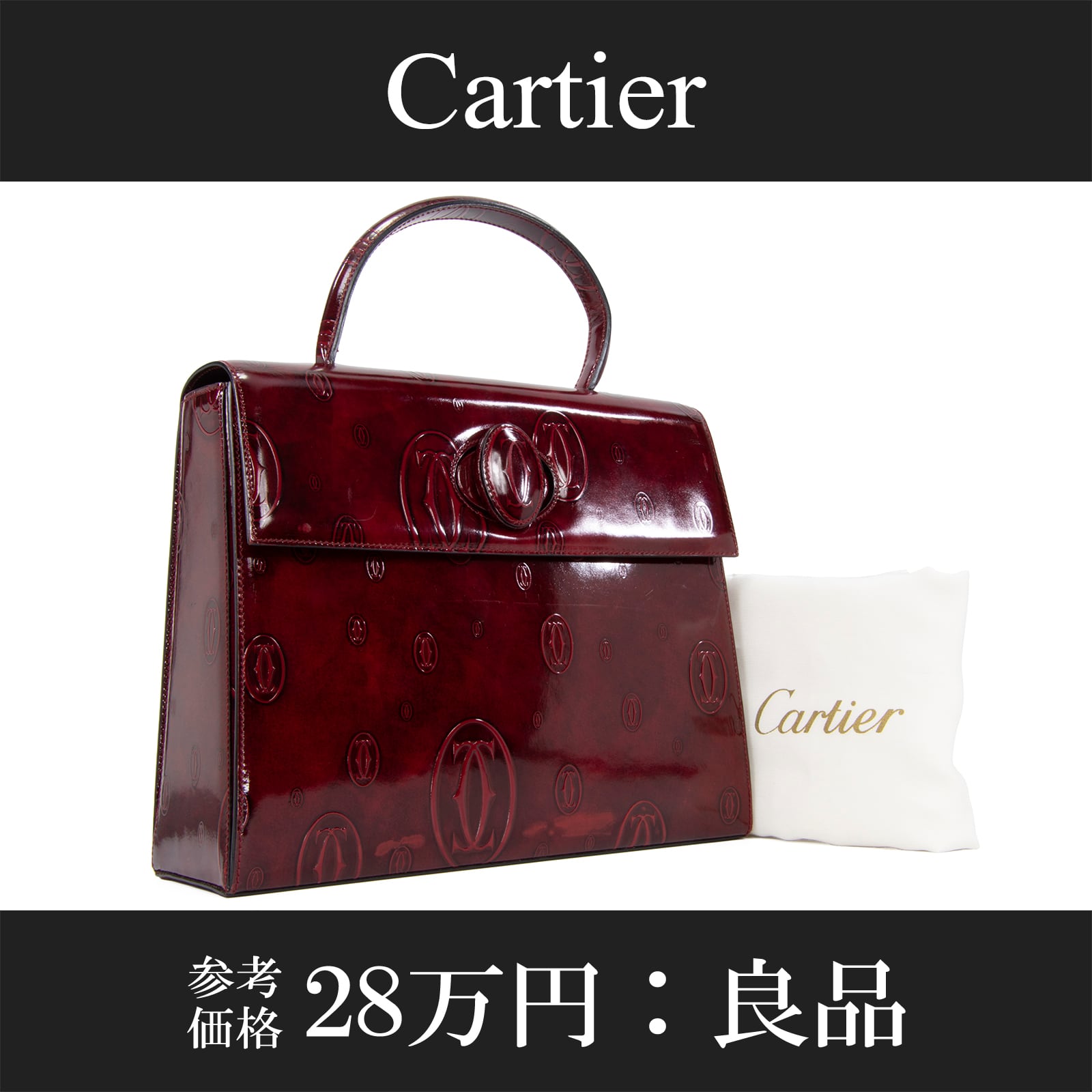 本物 送料無料 カルティエ ハンドバッグ レディース ハッピーバースデー ボルドー バーガンディー ロゴ マーク 本革 レザー 鞄 バック B258
