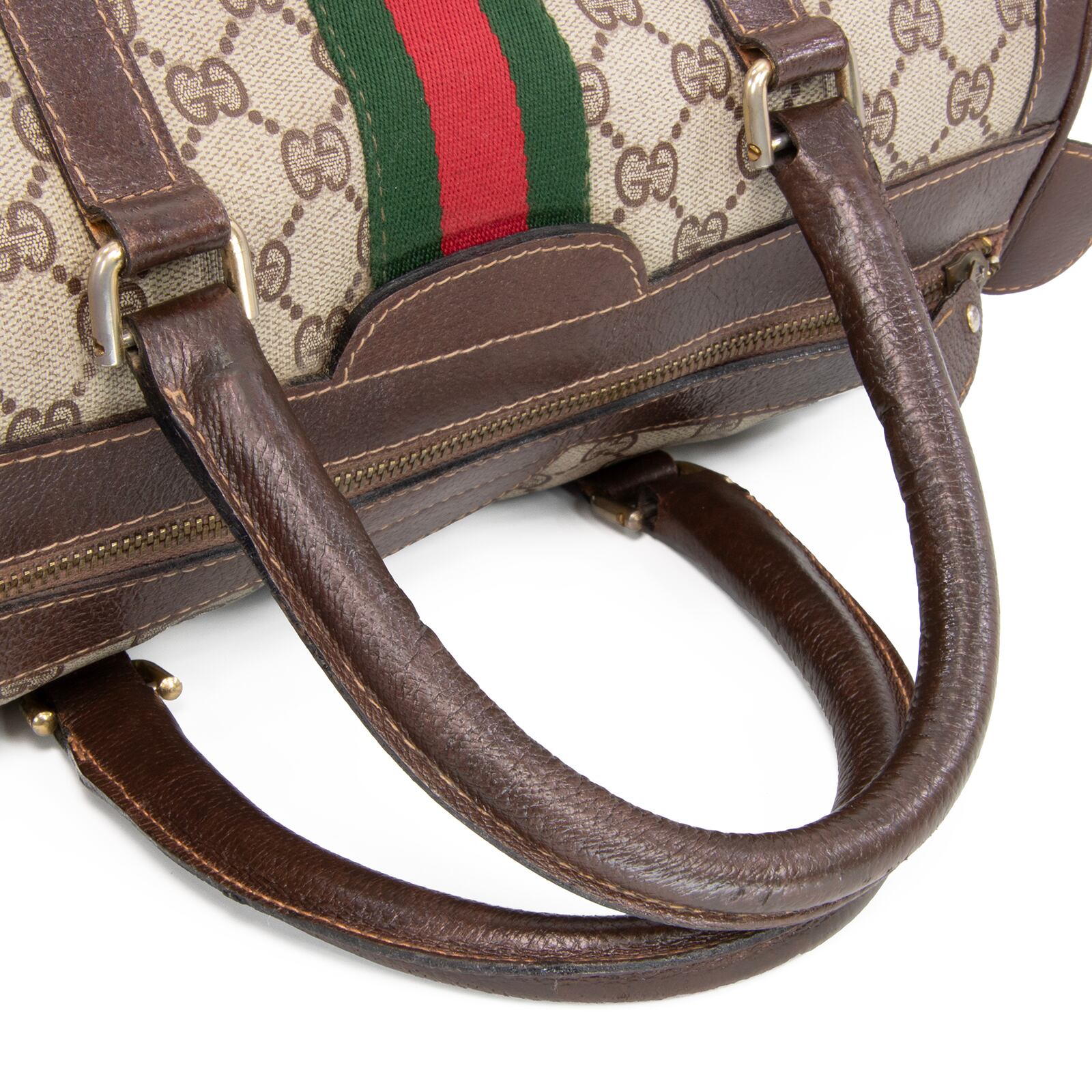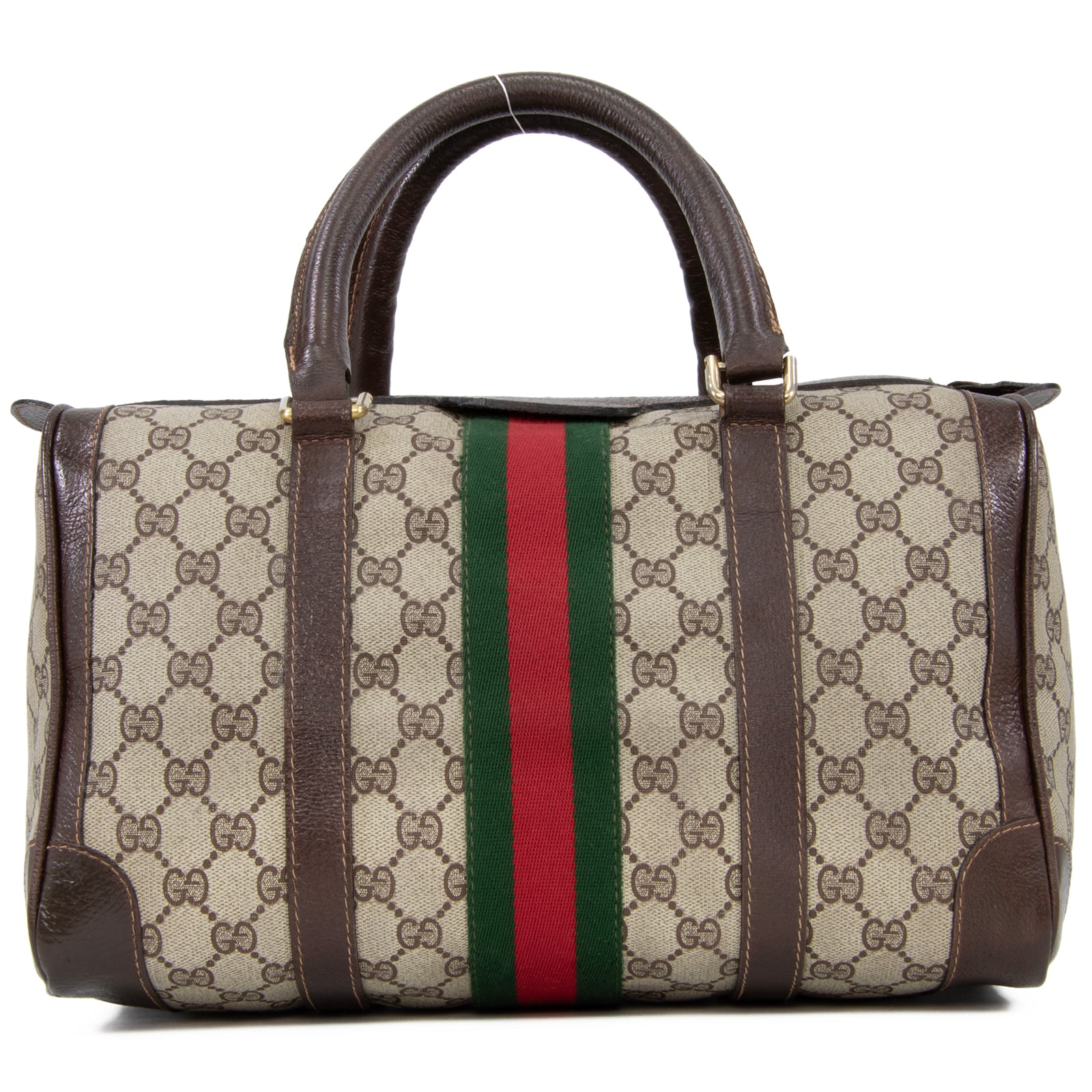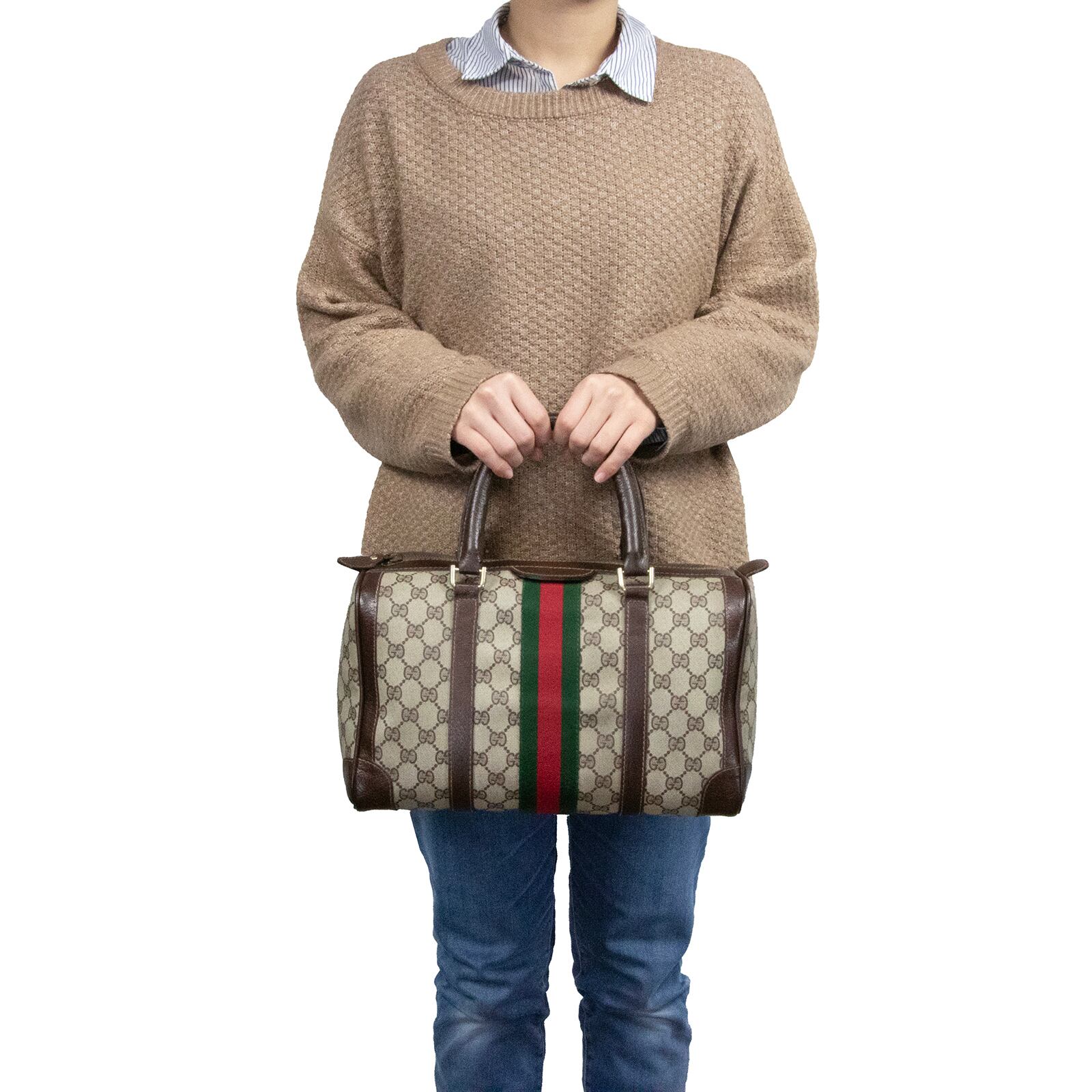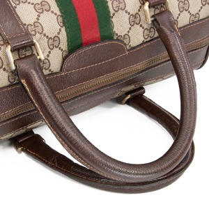 本物 送料無料 オールドグッチ ハンドバッグ メンズ レディース ウェビングライン 茶色 珍しい GGロゴ マーク 赤緑 本革 鞄 バック B259