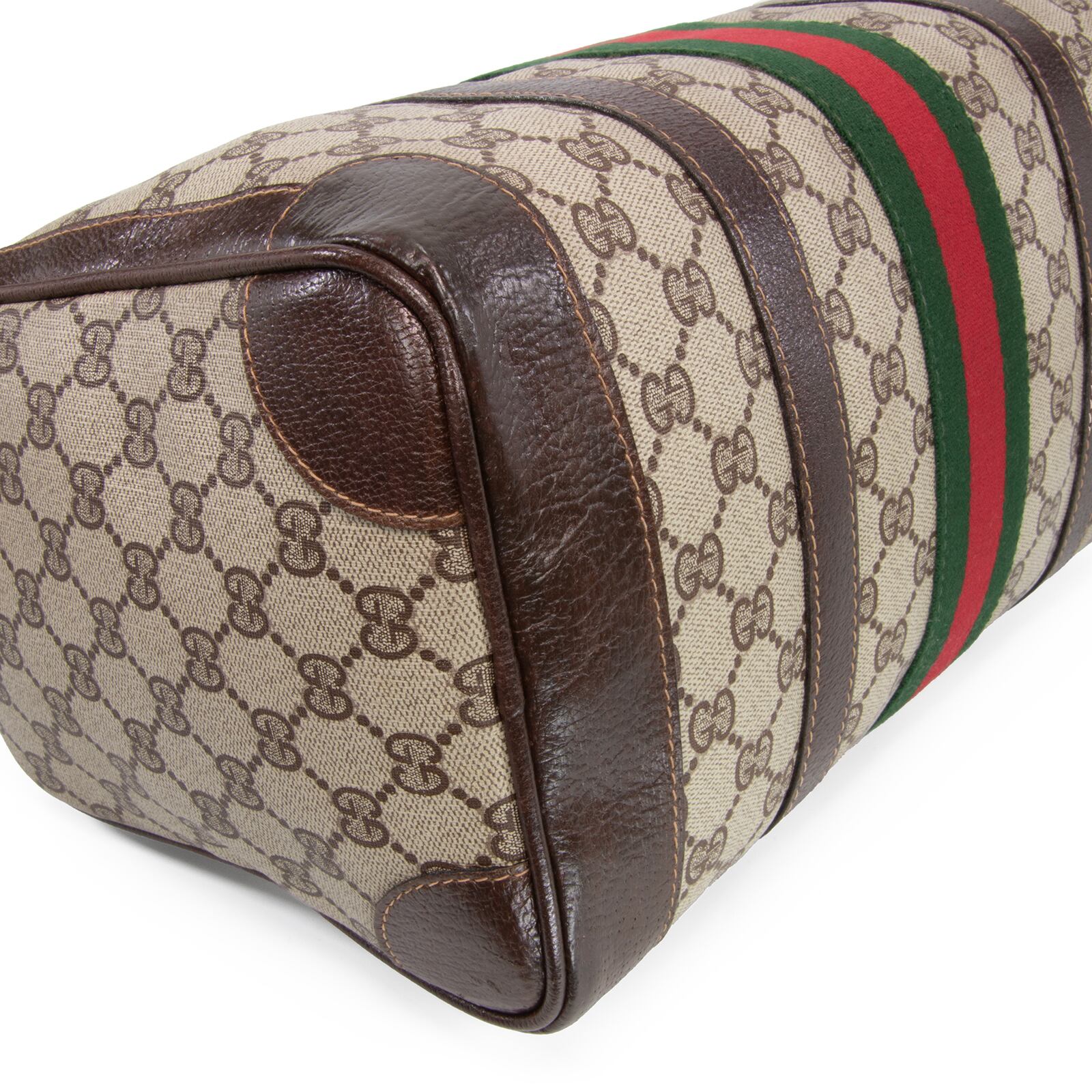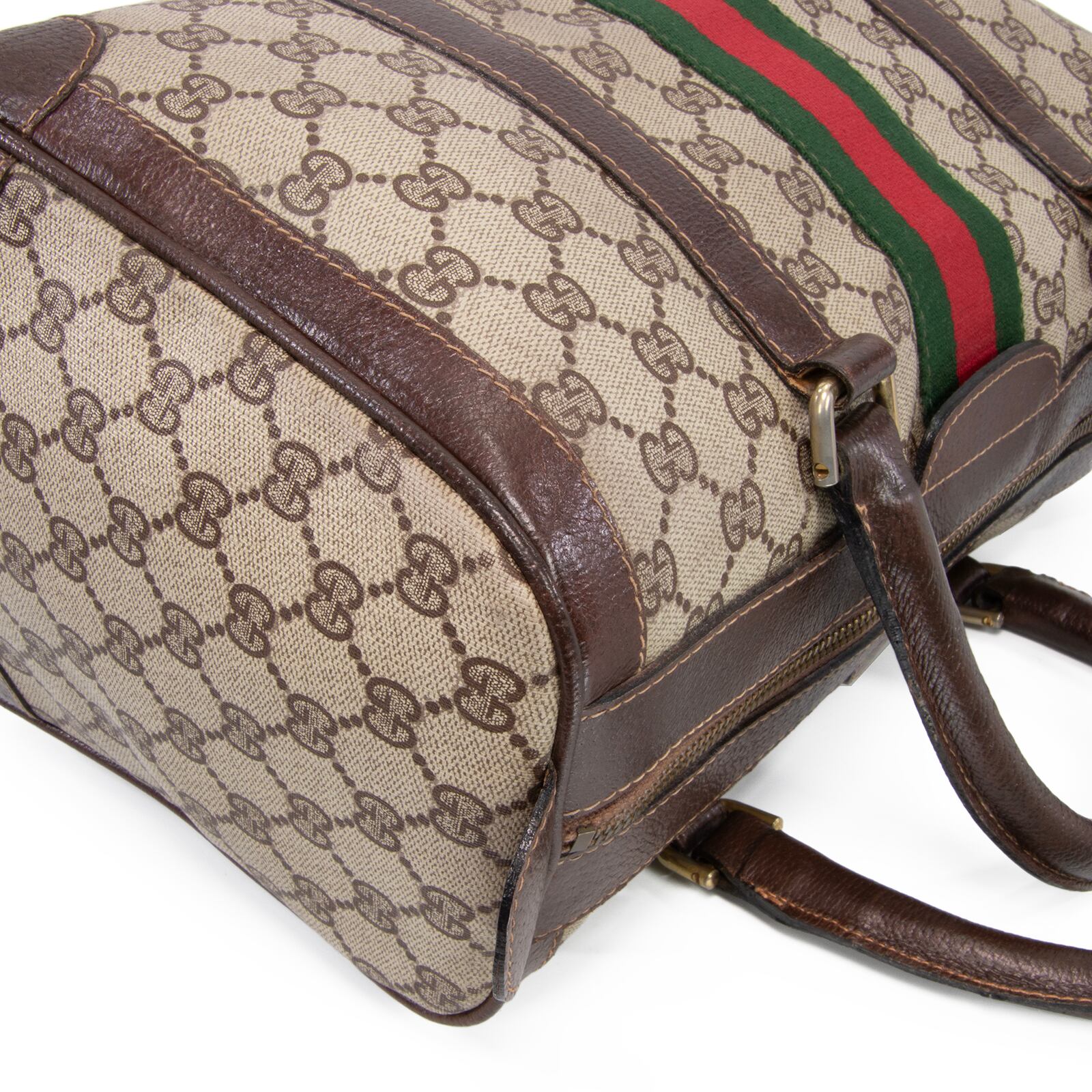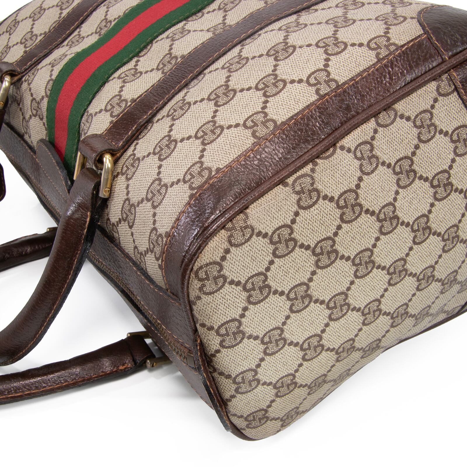 本物 送料無料 オールドグッチ ハンドバッグ メンズ レディース ウェビングライン 茶色 珍しい GGロゴ マーク 赤緑 本革 鞄 バック B259