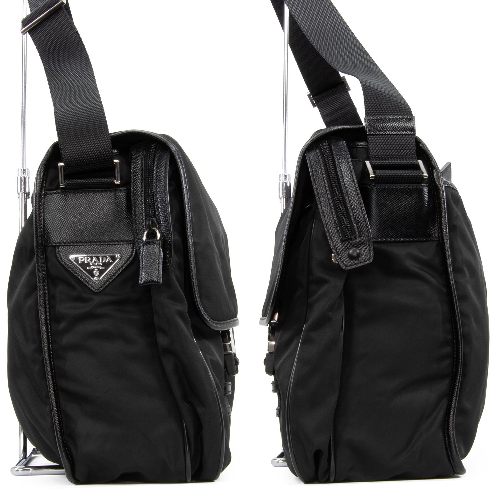 本物 送料無料 プラダ ショルダーバッグ 新品同様 メンズ レディース 黒 斜め掛け 大きめ ロゴ 本革 レザー 鞄 メッセンジャーバック B263