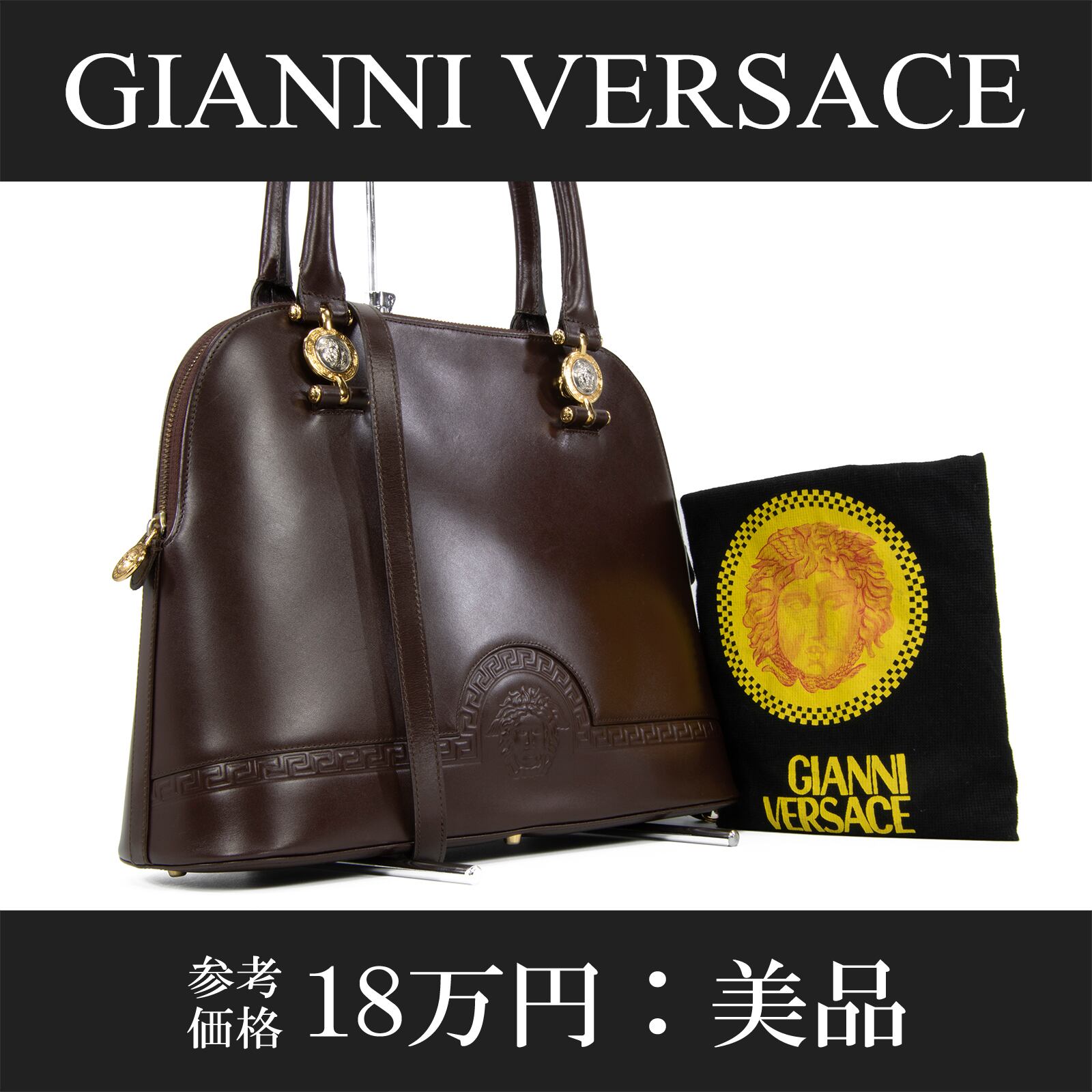 本物 送料無料 ジャンニヴェルサーチェ 2WAYショルダーバッグ レディース 茶色 珍しい 肩掛け メドゥーサ オールド 本革 鞄 バック B266