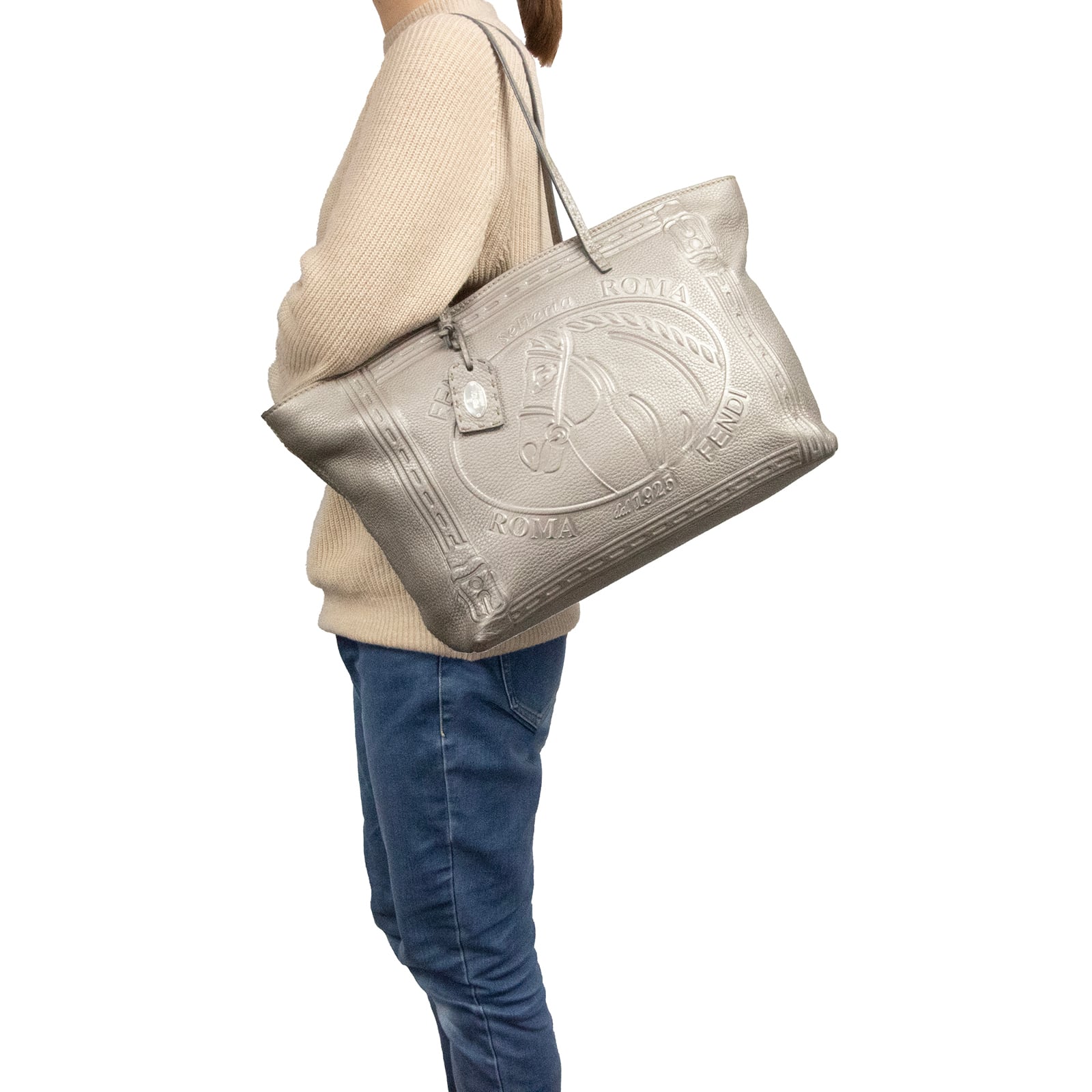 本物 送料無料 フェンディ トートバッグ ショルダーバッグ メンズ レディース セレリア シルバー 馬 ロゴ 本革 レザー 綺麗 鞄 バック L161
