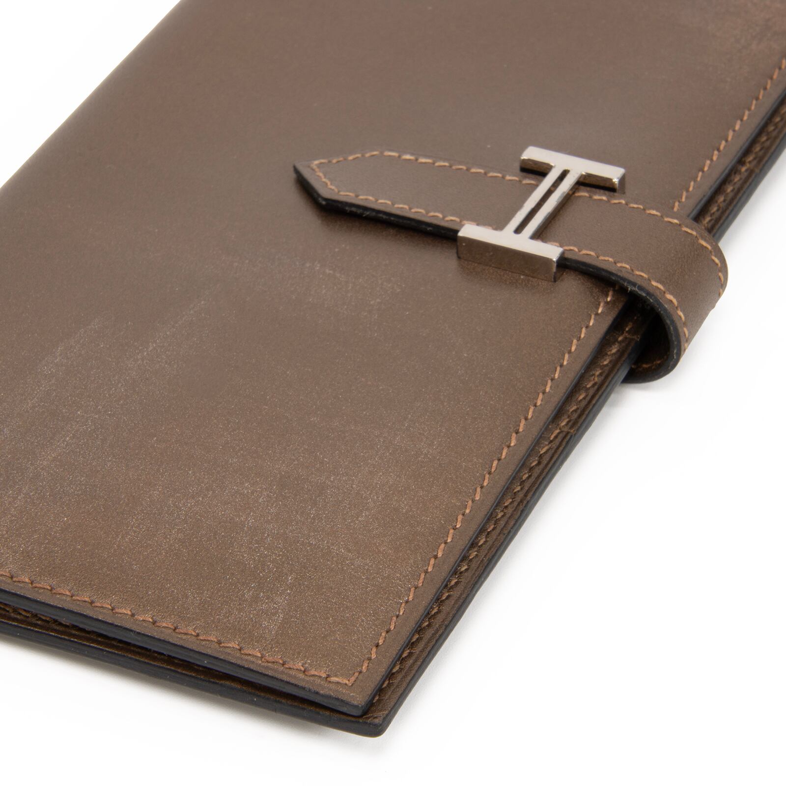 本物 送料無料 エルメス 長財布 二つ折り メンズ レディース ベアン クラシック ブロンズ 珍しい Hシルバー金具 スマート 本革 レザー C199