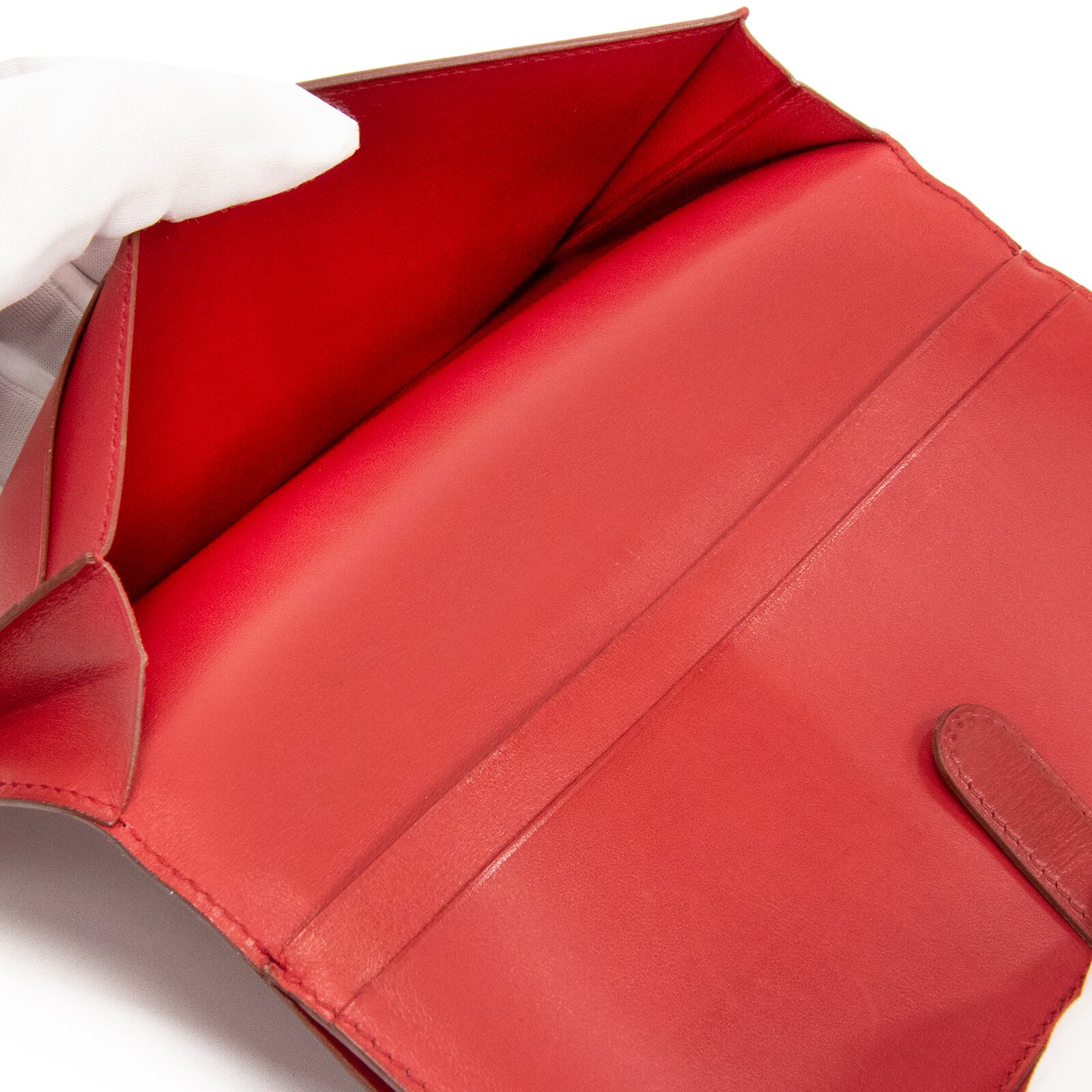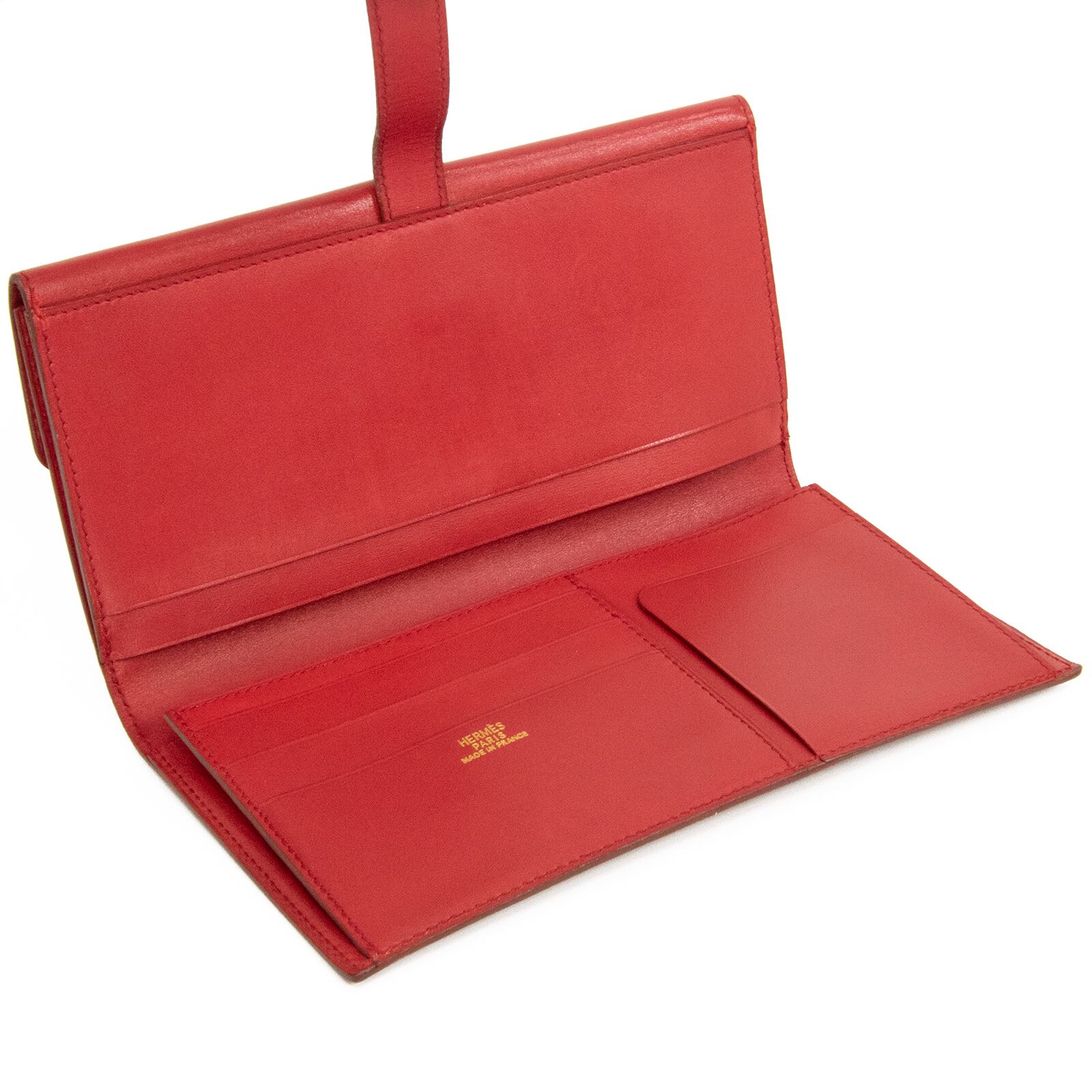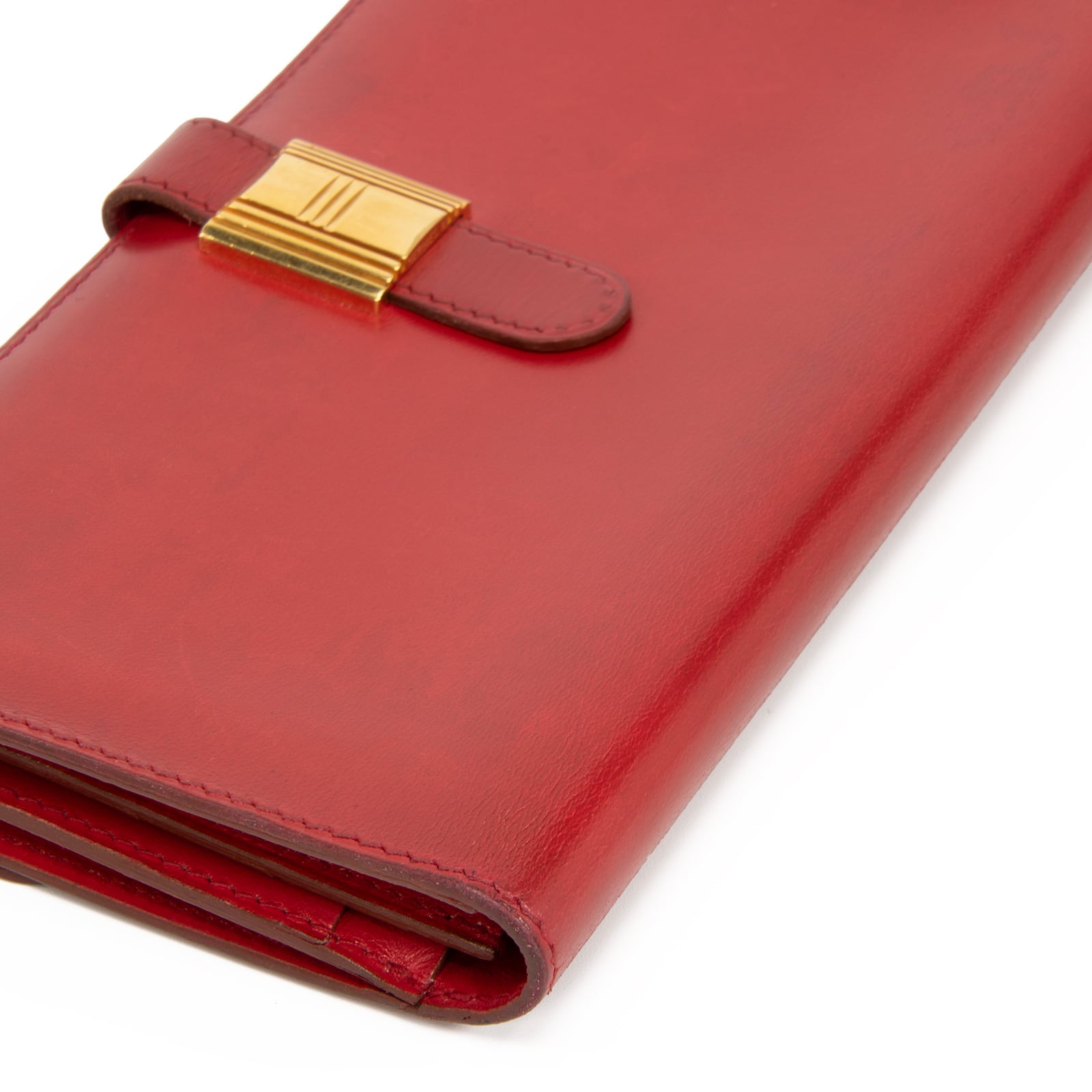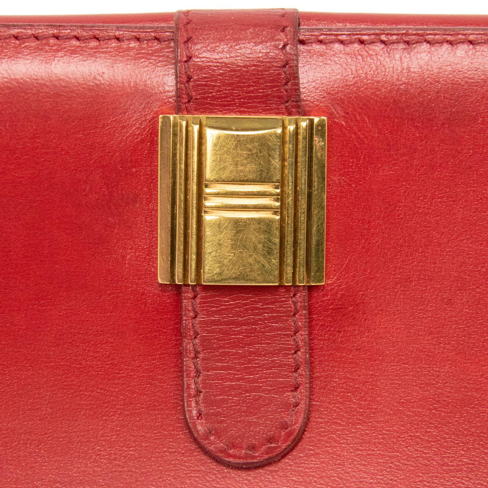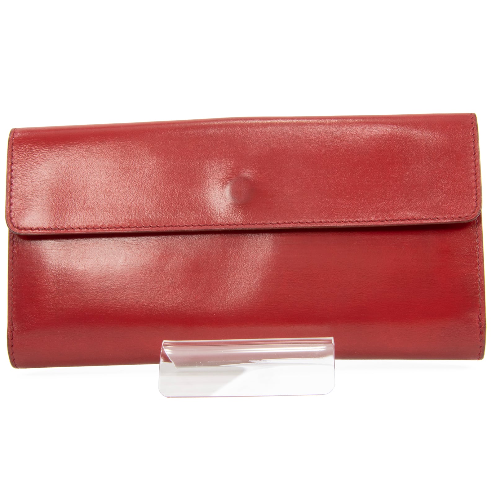 本物 送料無料 エルメス 長財布 二つ折り レディース ボックスカーフ ソミュールディアンヌ 赤 珍しい Hゴールド金具 スマート 本革 C201