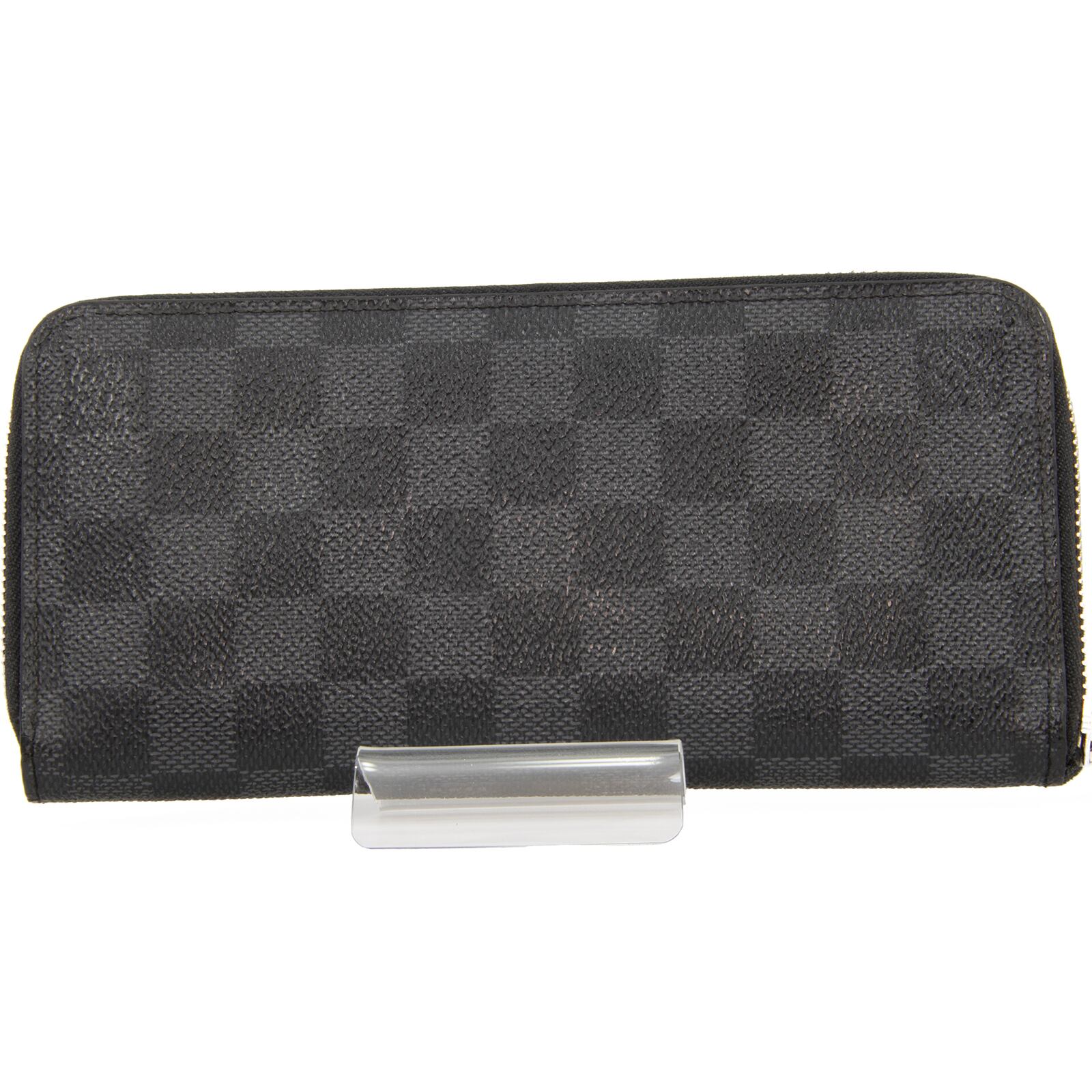 本物 送料無料 ヴィトン 長財布 ラウンドファスナー メンズ ジッピーウォレット ダミエ グラフィット 黒 グレー ロゴ マーク スマート C204