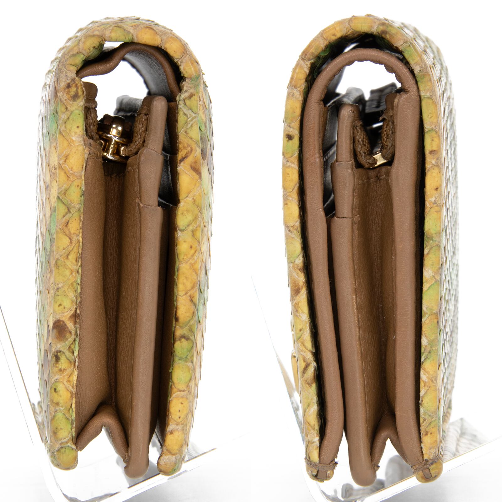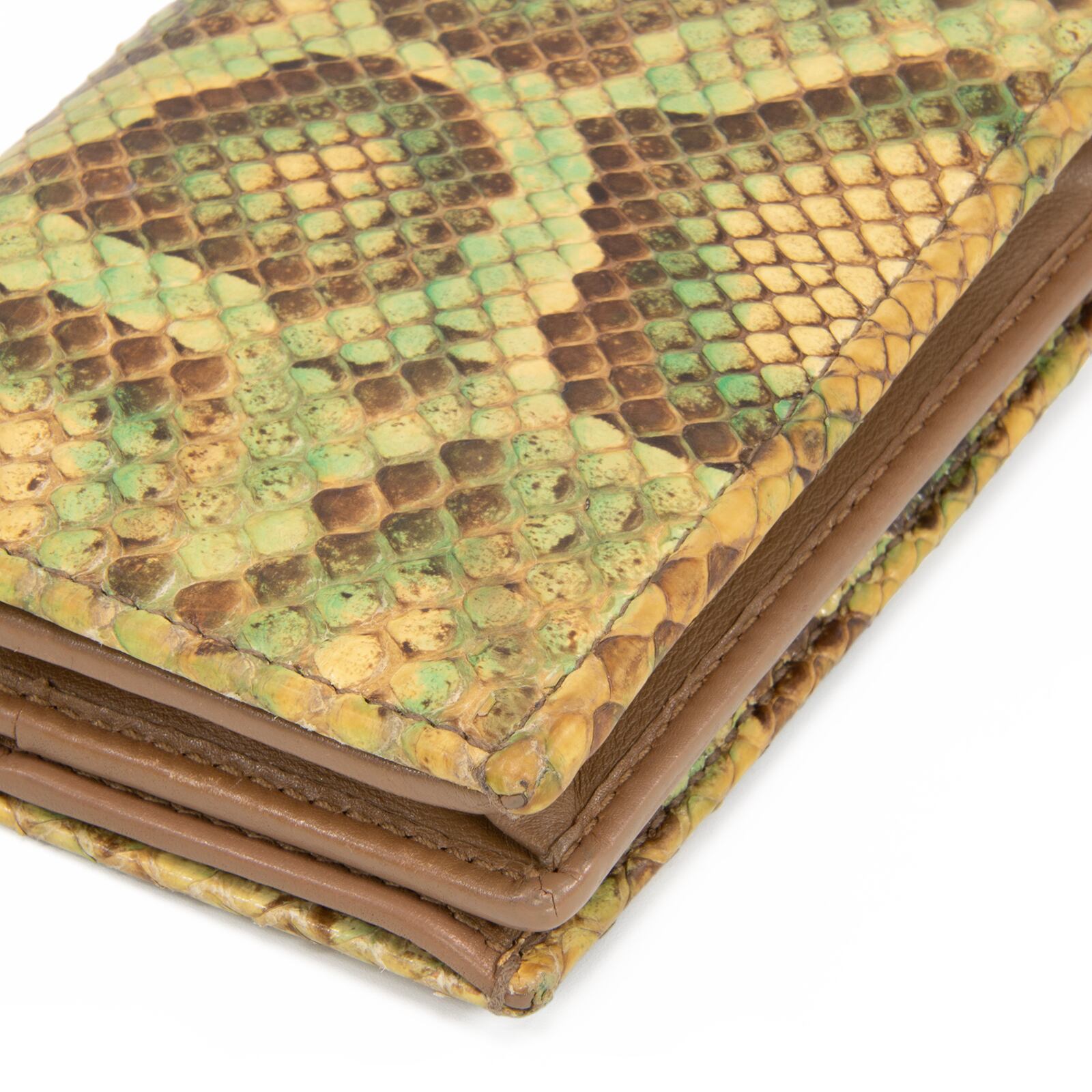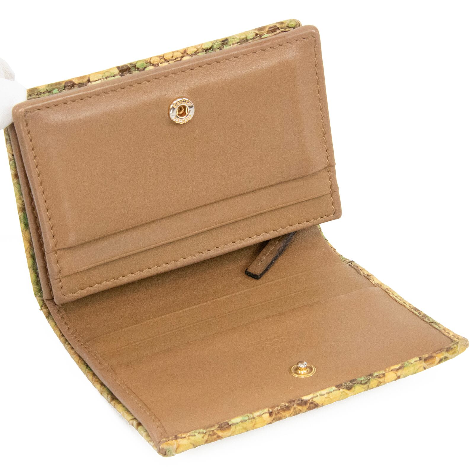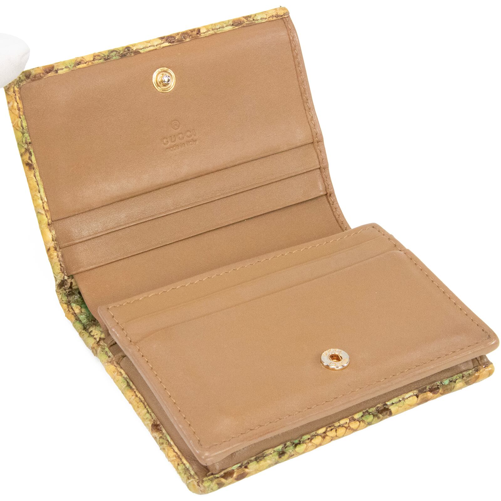 本物 送料無料 グッチ 短財布 二つ折り財布 レディース パイソン GGマーモント 黄色 緑 茶色 珍しい 蛇の本革 レザー GGロゴ マーク C207