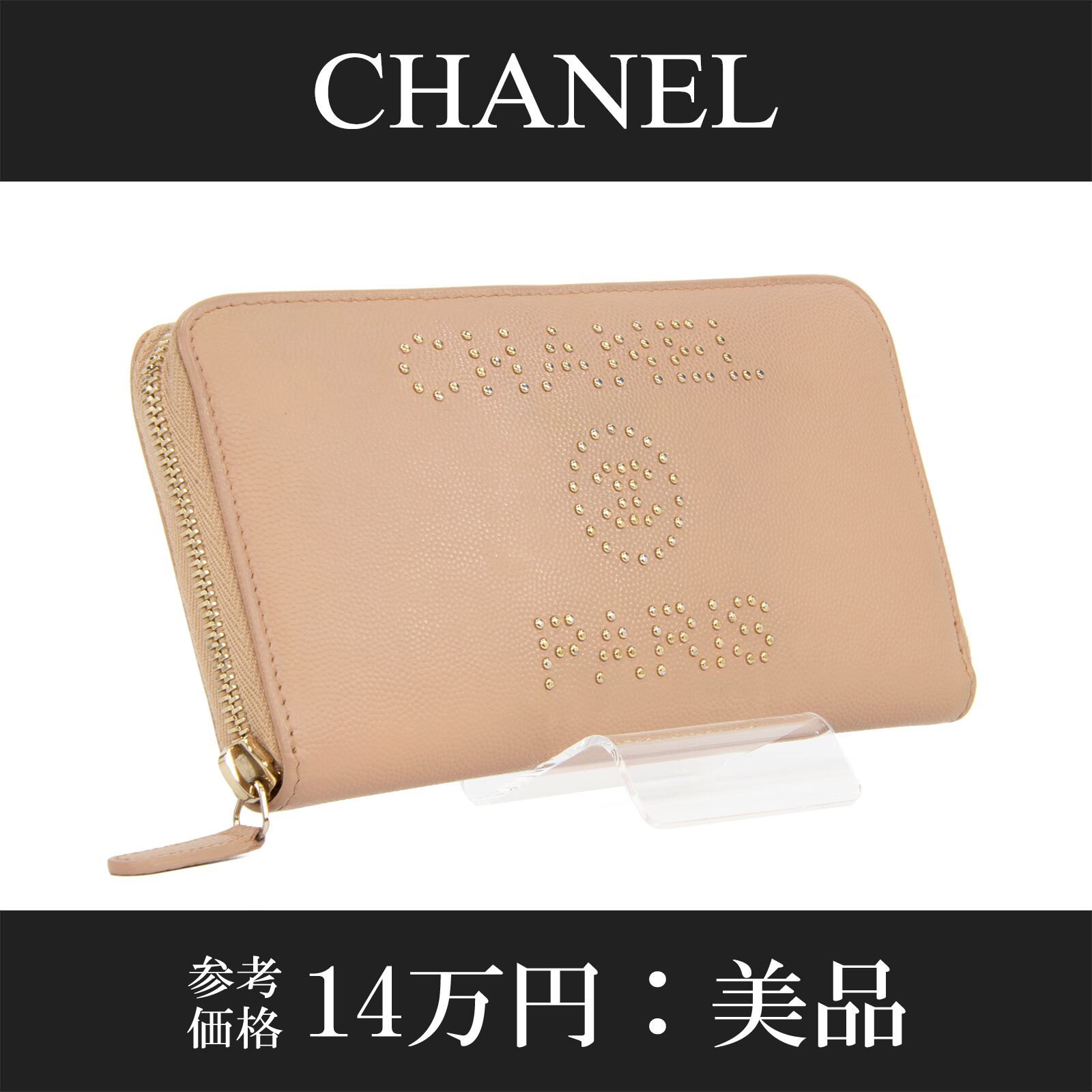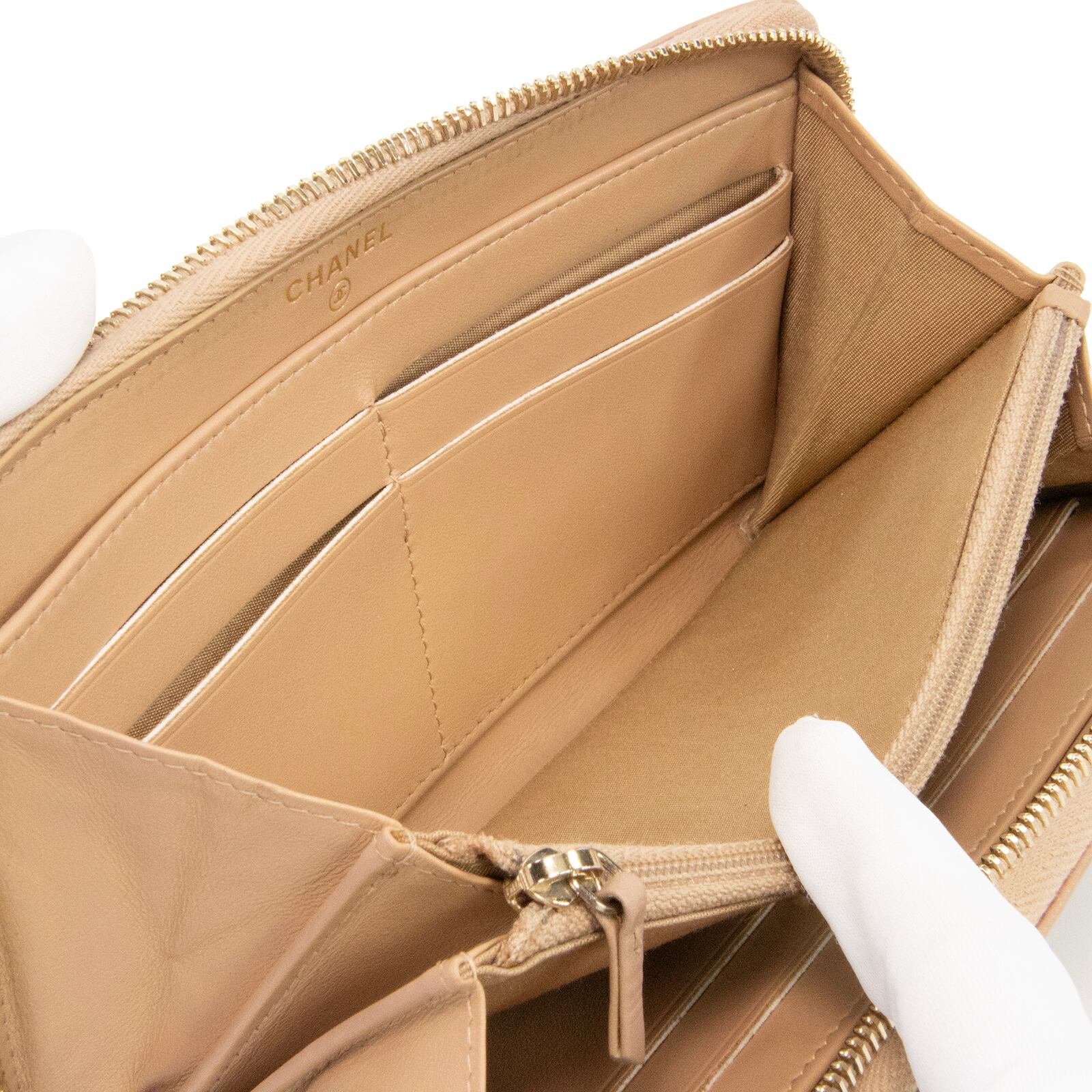 本物 送料無料 シャネル 長財布 ラウンドファスナー レディース キャビアスキン ドーヴィル ピンクベージュ ココマーク ロゴ レザー D182
