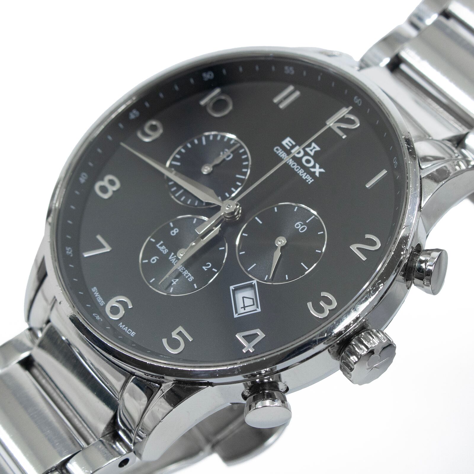 送料無料 エドックス 腕時計 メンズ LES VAUBERTS レヴォベール 10409 黒 ブラック ロゴ クロノグラフ ブランド おしゃれ 珍しい 綺麗 R009