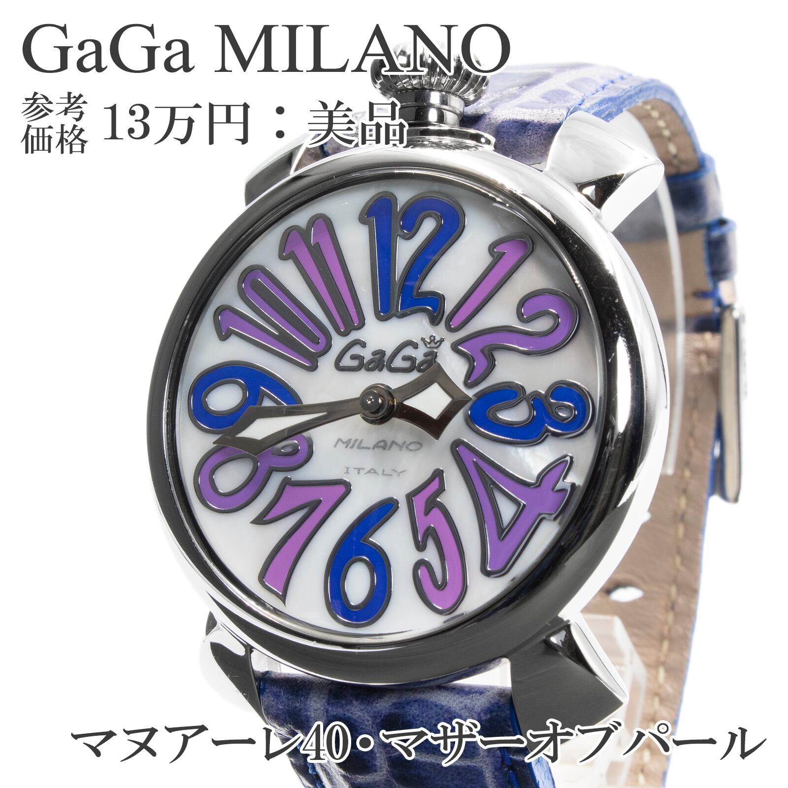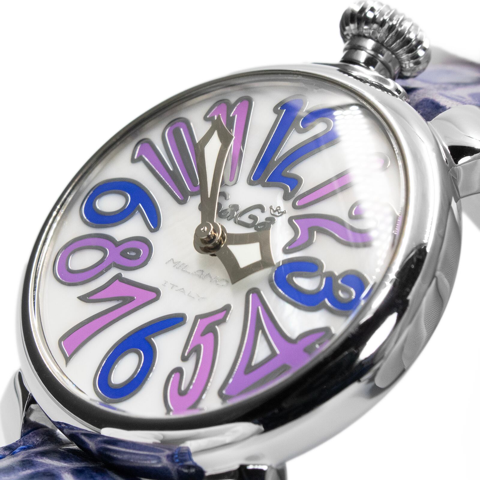 送料無料 ガガミラノ 腕時計 レディース マヌアーレ40mm 5020.3 白 青 パープル 真珠母貝 シェル盤 派手 目立つ 珍しい ロゴ おしゃれ Q058