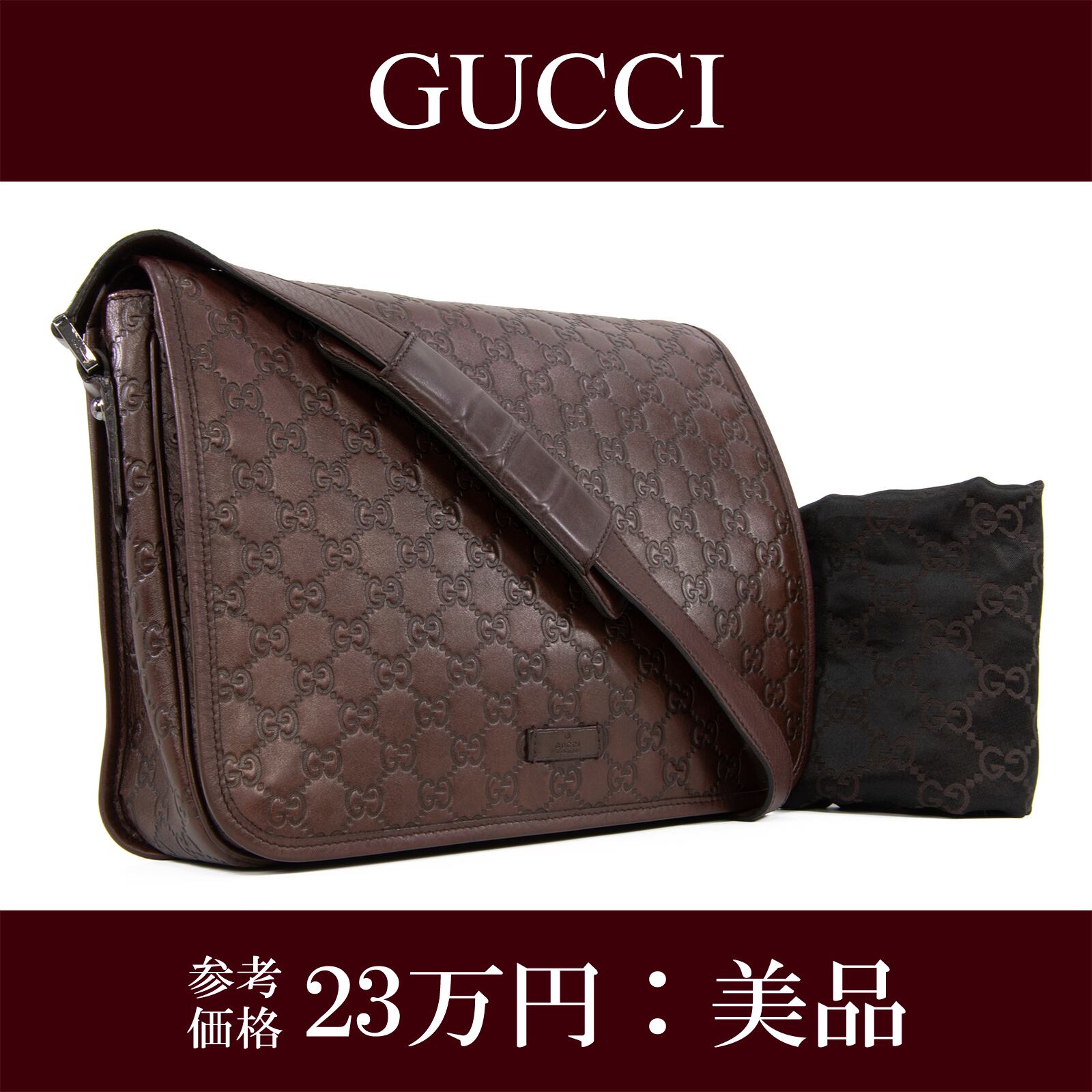 本物 送料無料 グッチ ショルダーバッグ メッセンジャーバッグ メンズ レディース 茶色 斜め掛け 本革 シマレザー GGロゴ 鞄 バック F229
