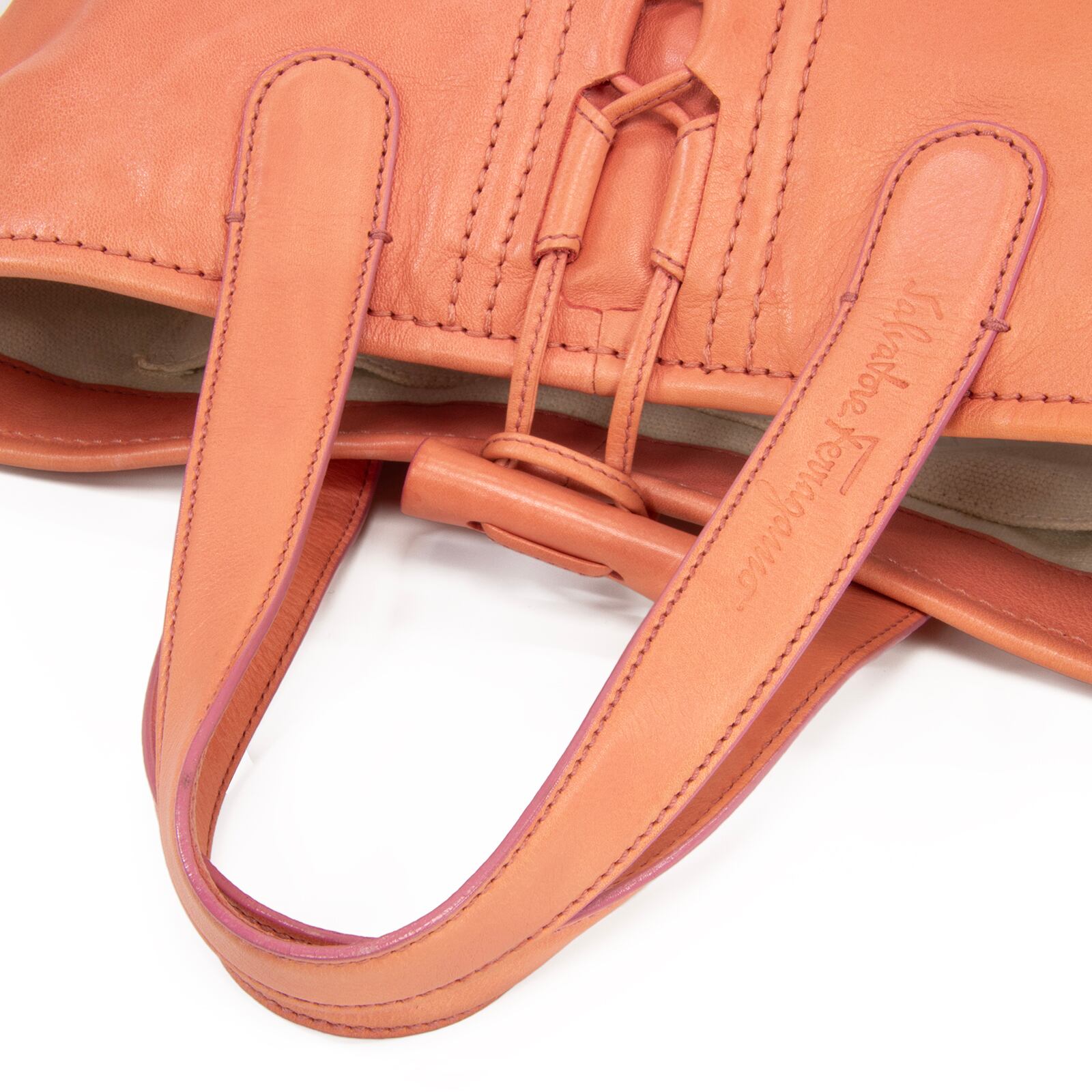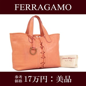 本物 送料無料 フェラガモ ハンドバッグ レディース エコロジカルライン ガンチーニ サーモンピンク 珍しい ロゴ 革 レザー 鞄 バック F233