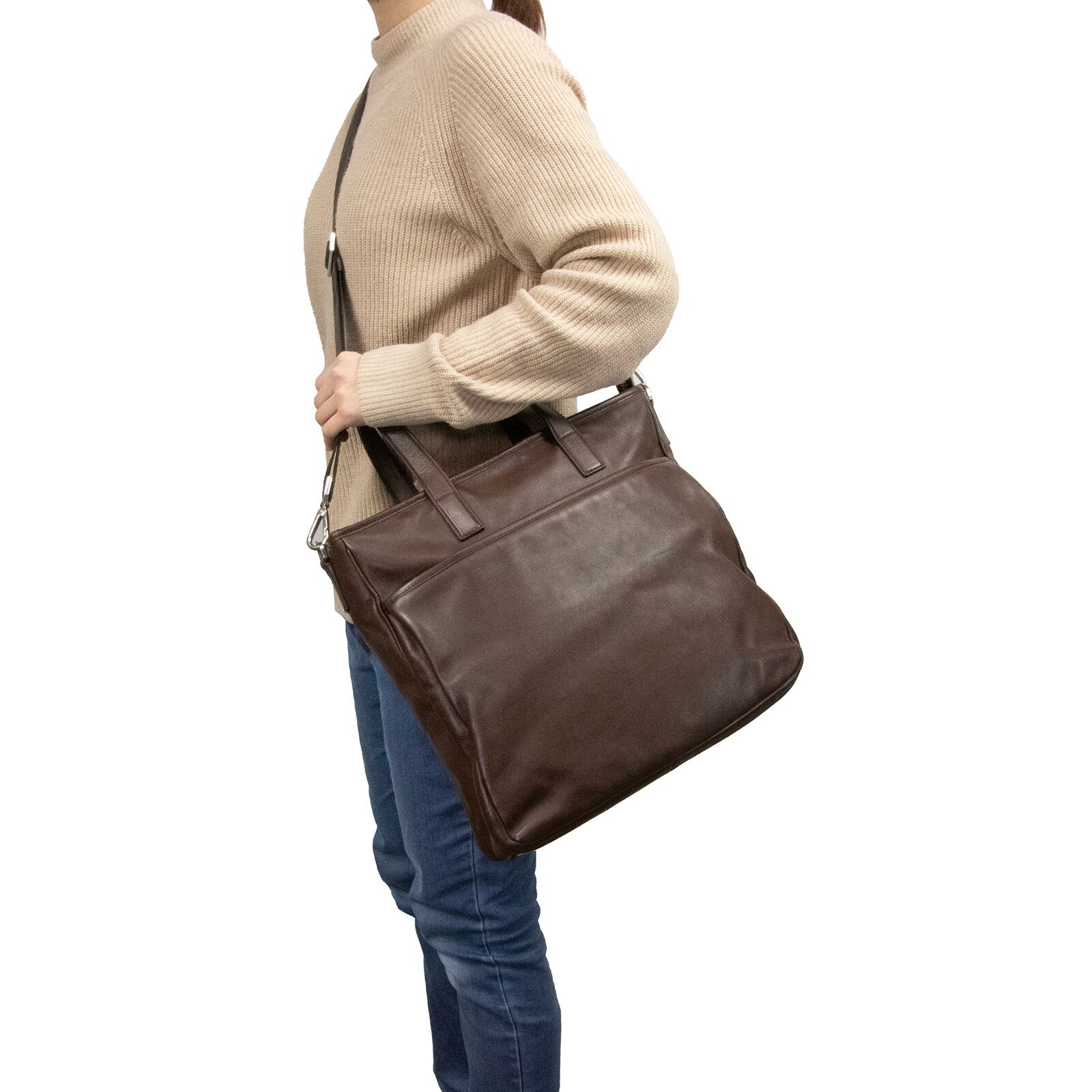 特徴:珍しい・高級・ビジネスバッグ・斜め掛け・A4対応・大容量・三角ロゴ・トライアングルロゴ・マーク・本革・レザー・シルバー金具・ハイブランド・おしゃれ