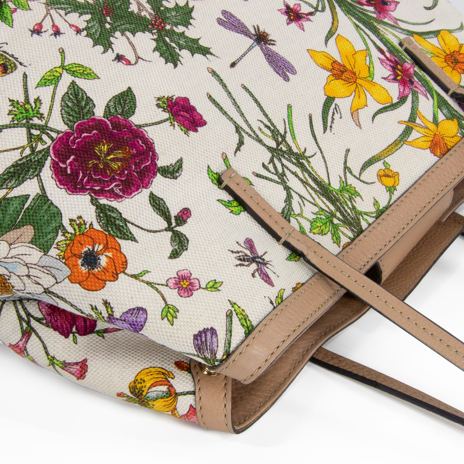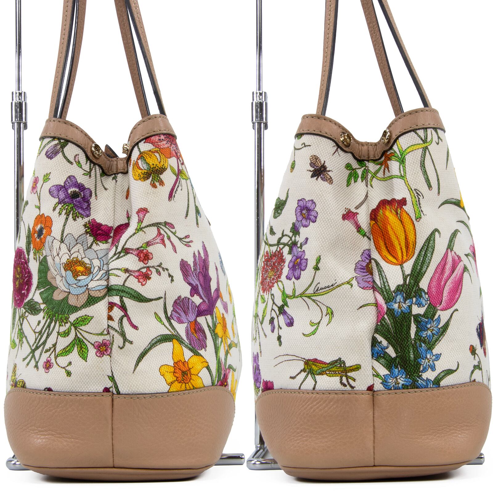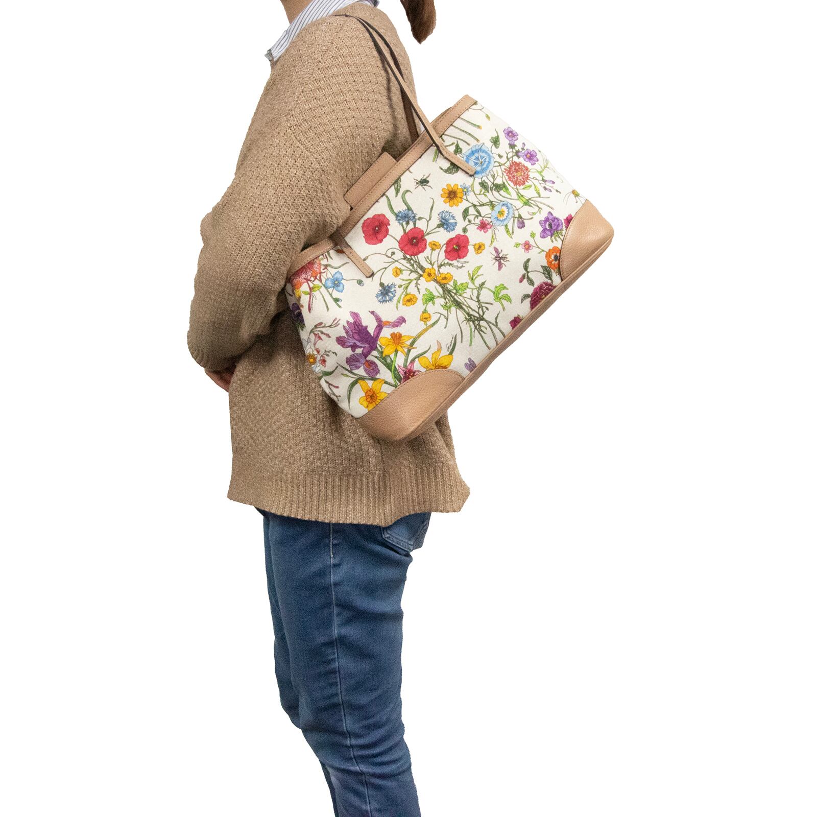 本物 送料無料 グッチ トートバッグ レディース フローラ 日本上陸50周年記念 白 ベージュ 赤 水色 珍しい フラワー ロゴ 鞄 バック I219