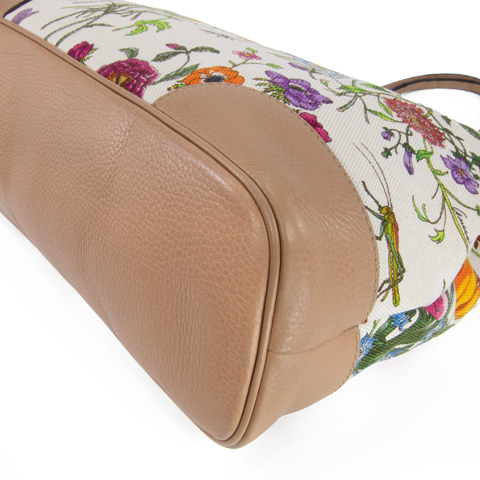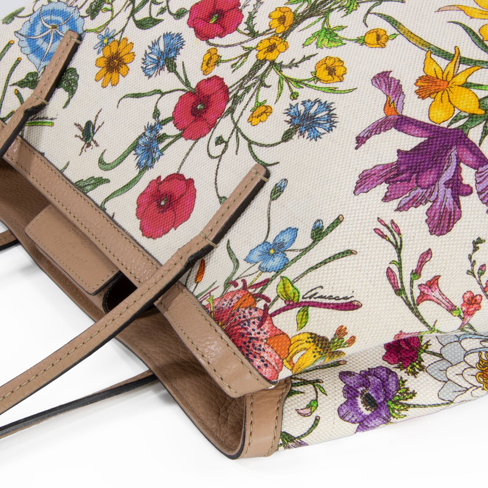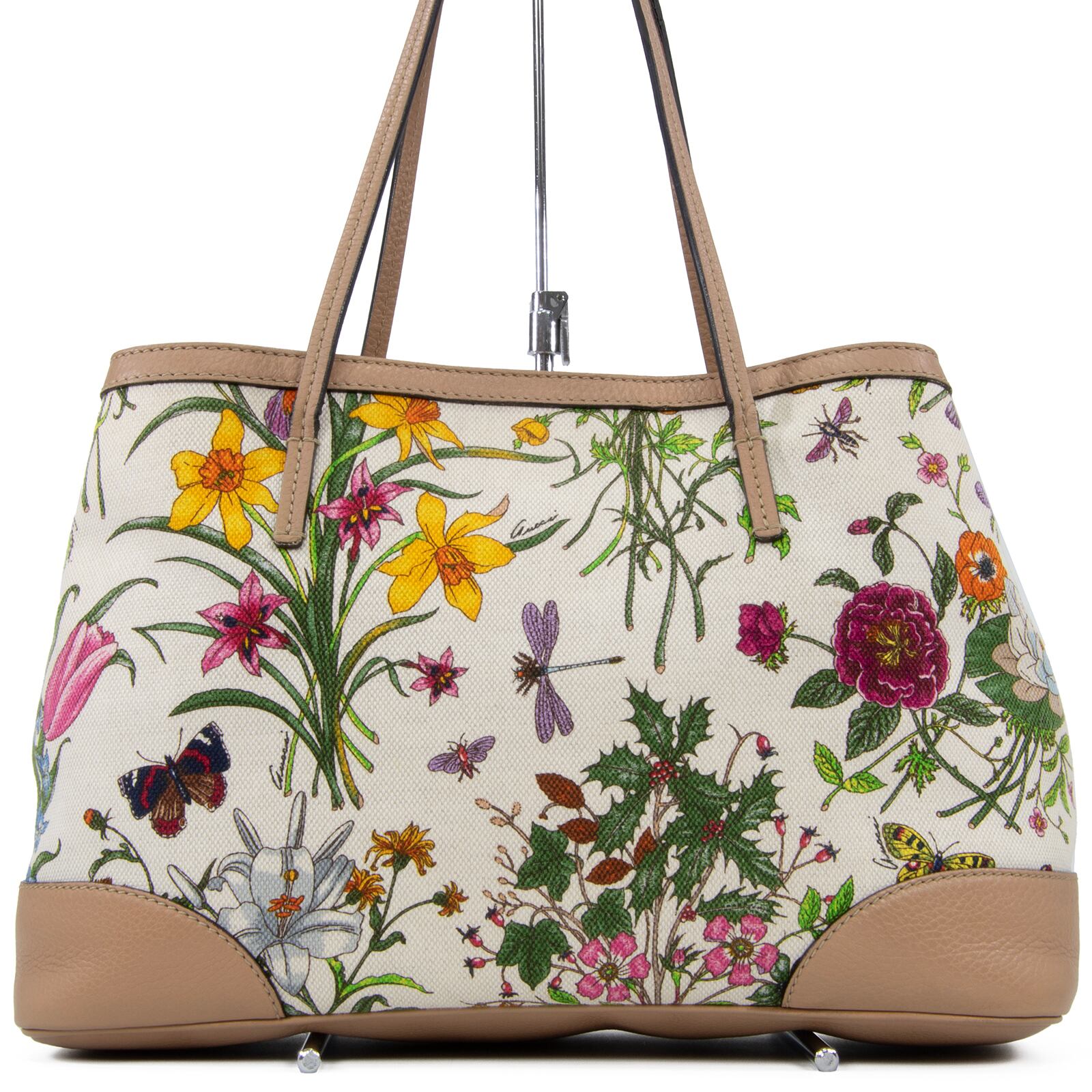 本物 送料無料 グッチ トートバッグ レディース フローラ 日本上陸50周年記念 白 ベージュ 赤 水色 珍しい フラワー ロゴ 鞄 バック I219